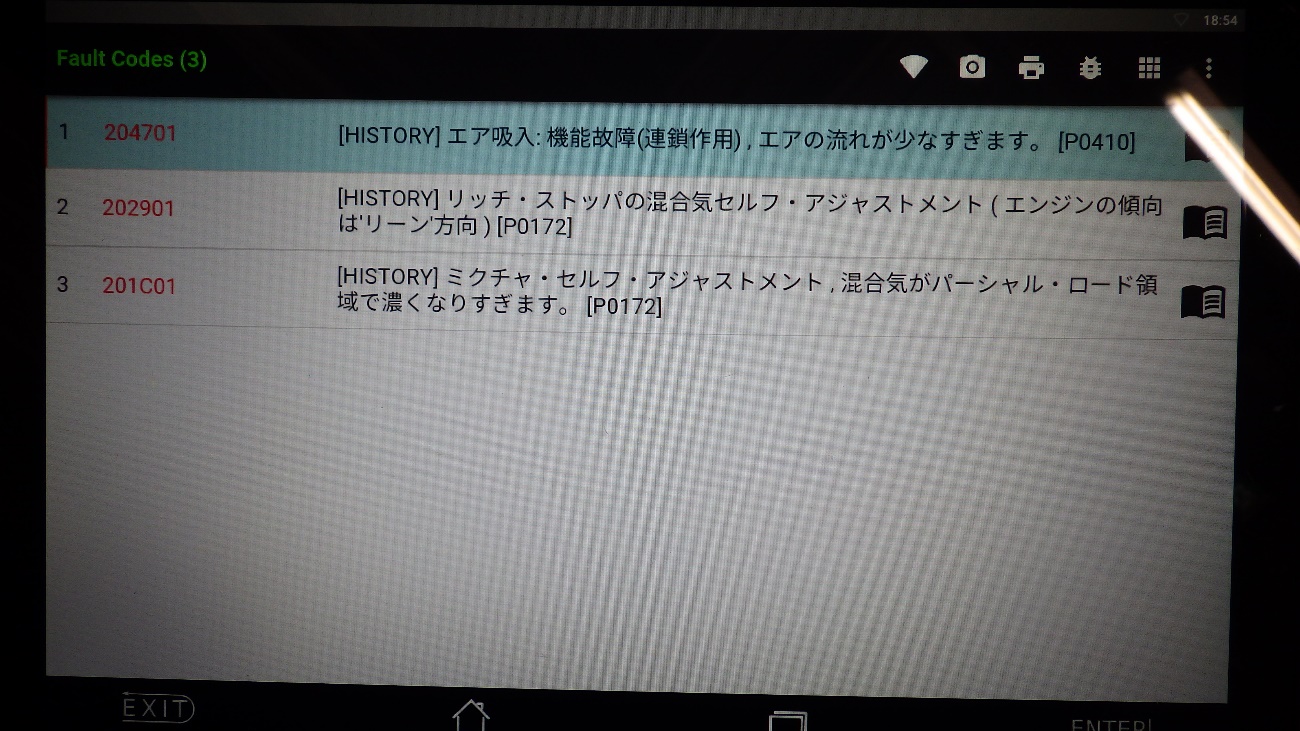 テスターで診断した結果、一時的なエアの流量が少ない状態でエラーが点灯しておりました。