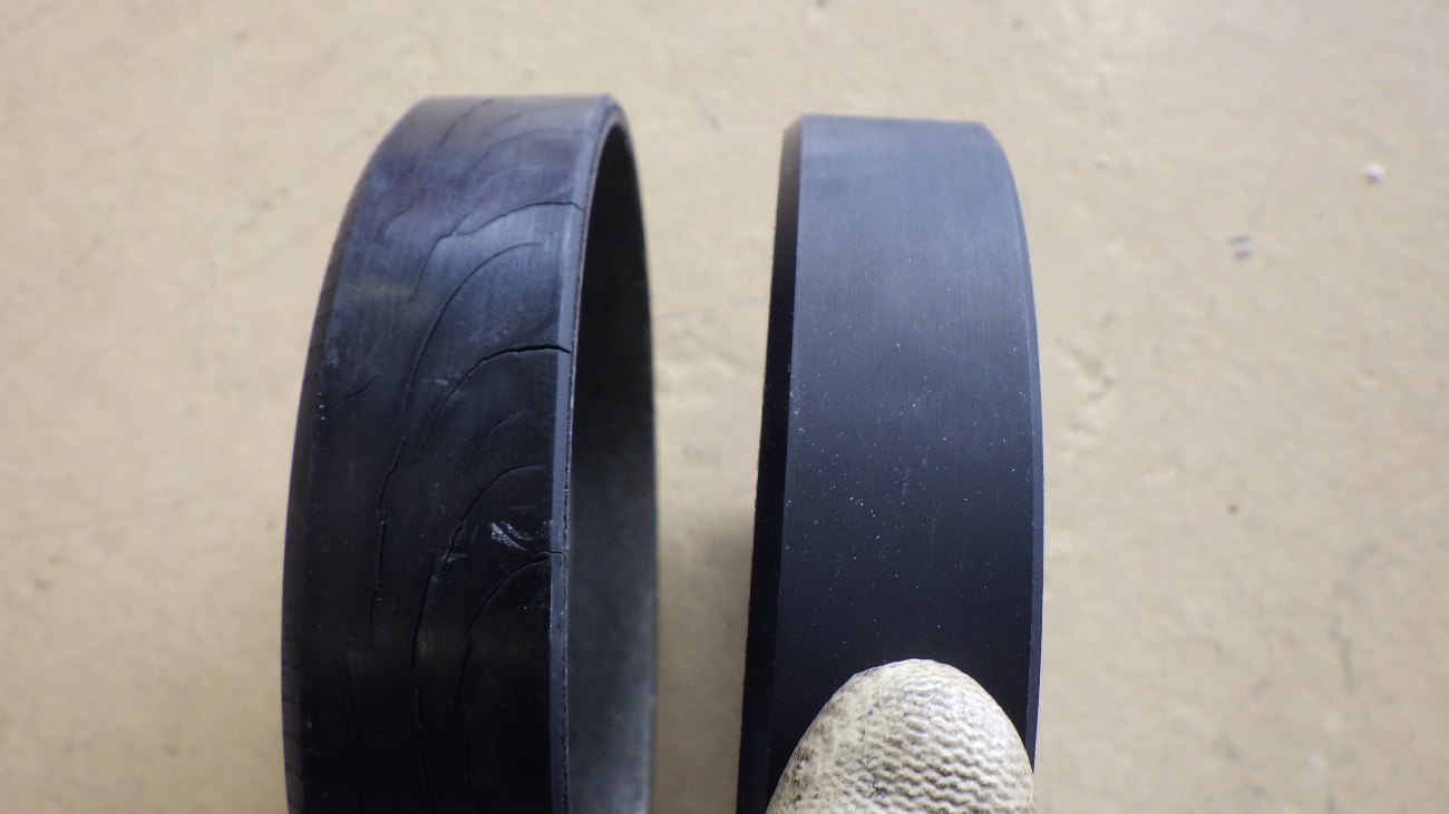 プーリーの拡大図になります。無数のひび割れが見受けられます。
