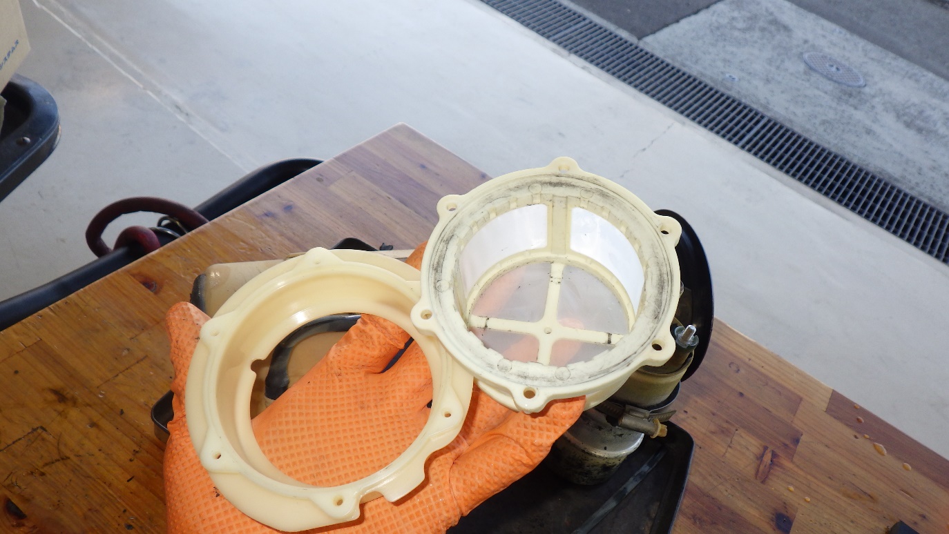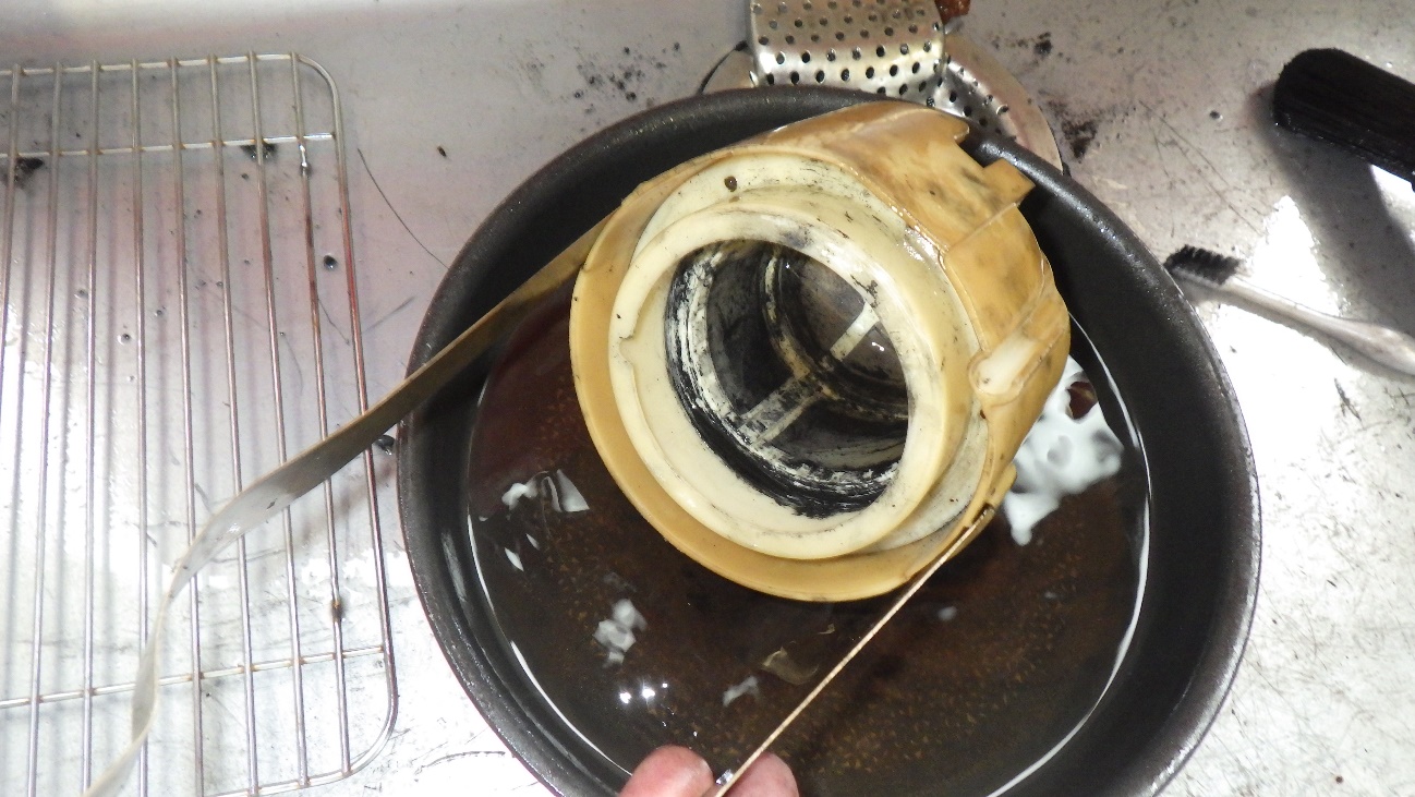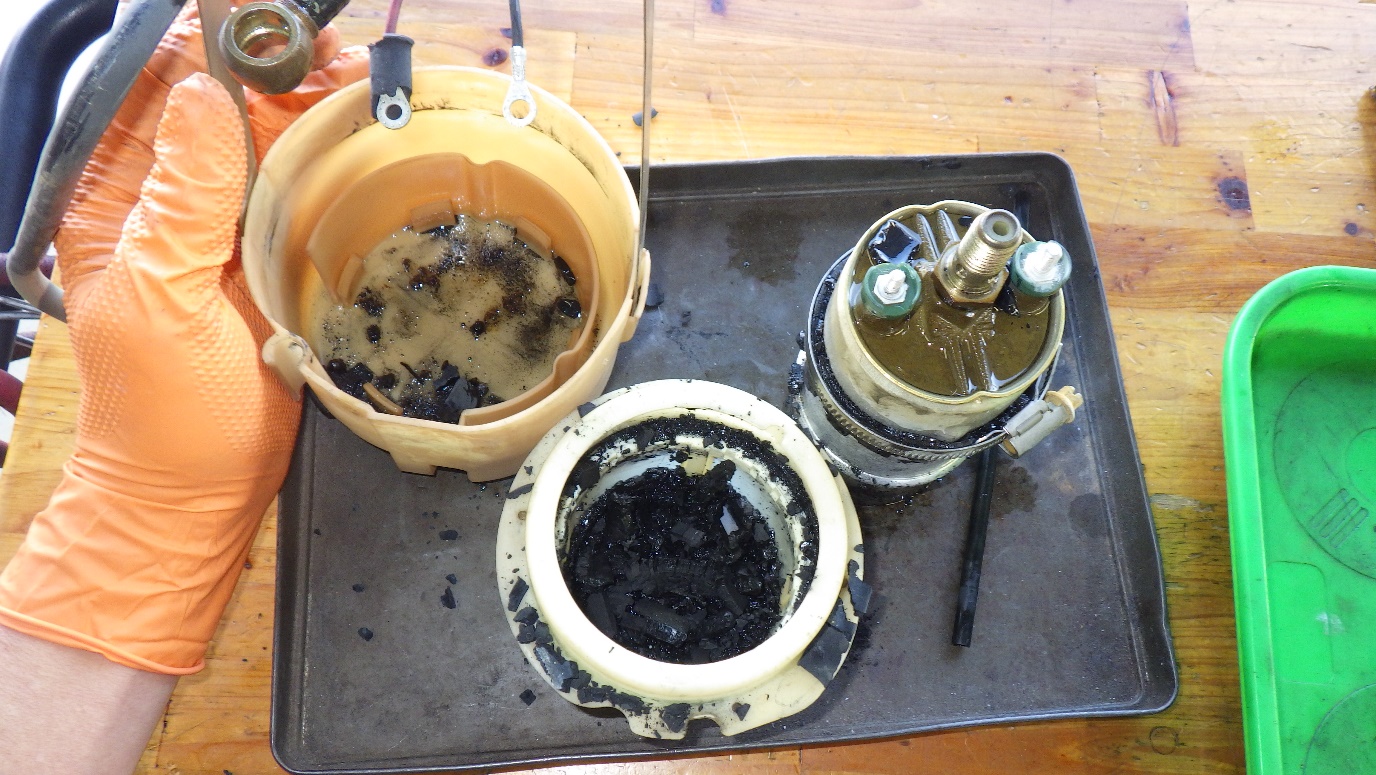タール状のものはポンプ廻りに取り付けられているゴムのパーツが溶けたものになります。これらを清掃し新品パーツを組付けていきます。