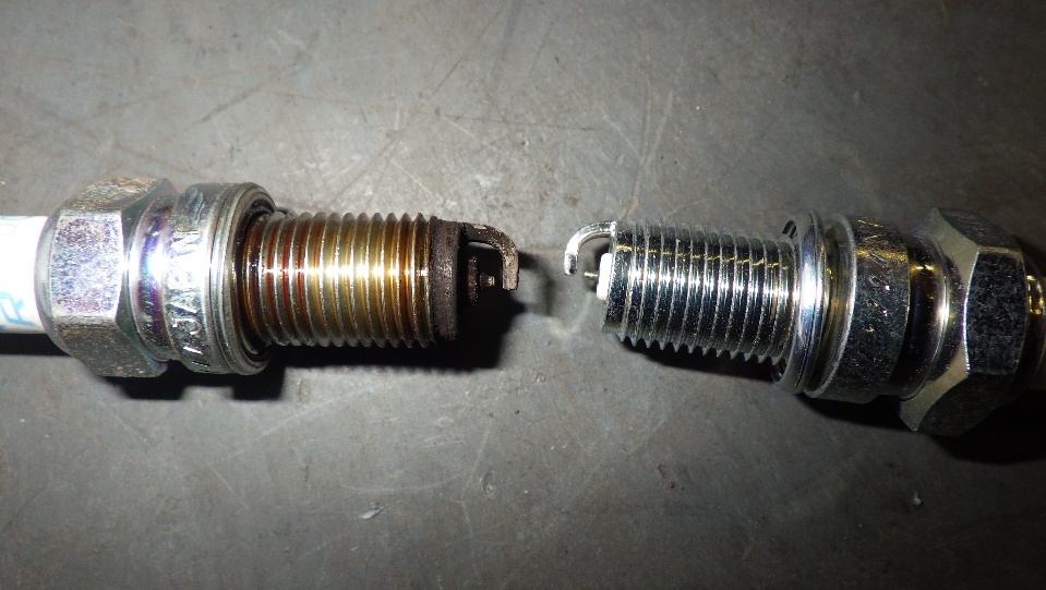 プラグのワッシャの部分のつぶれ具合が違います。