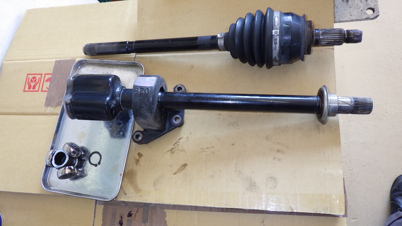 マニュアルトランスミッションの車輛なので、ドライブシャフトを抜いた際に
