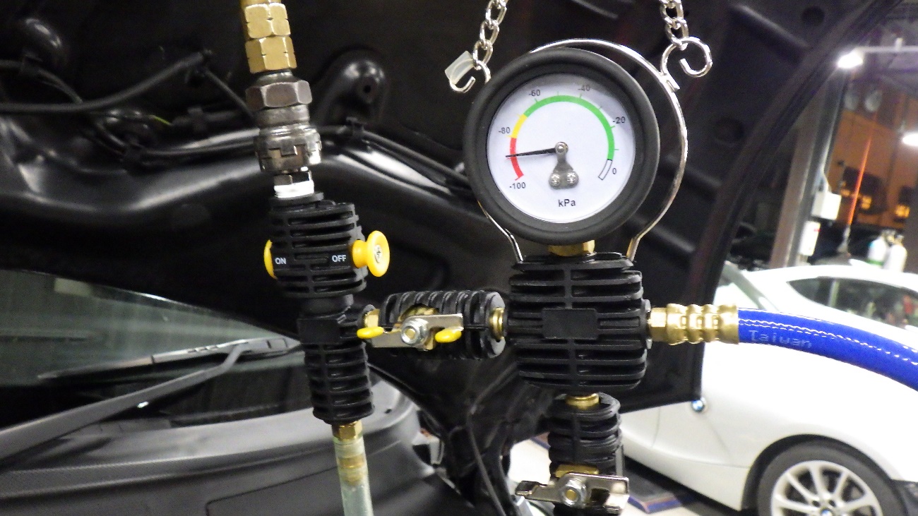 組付け完了後LLCを真空でエア抜きを行っております。
