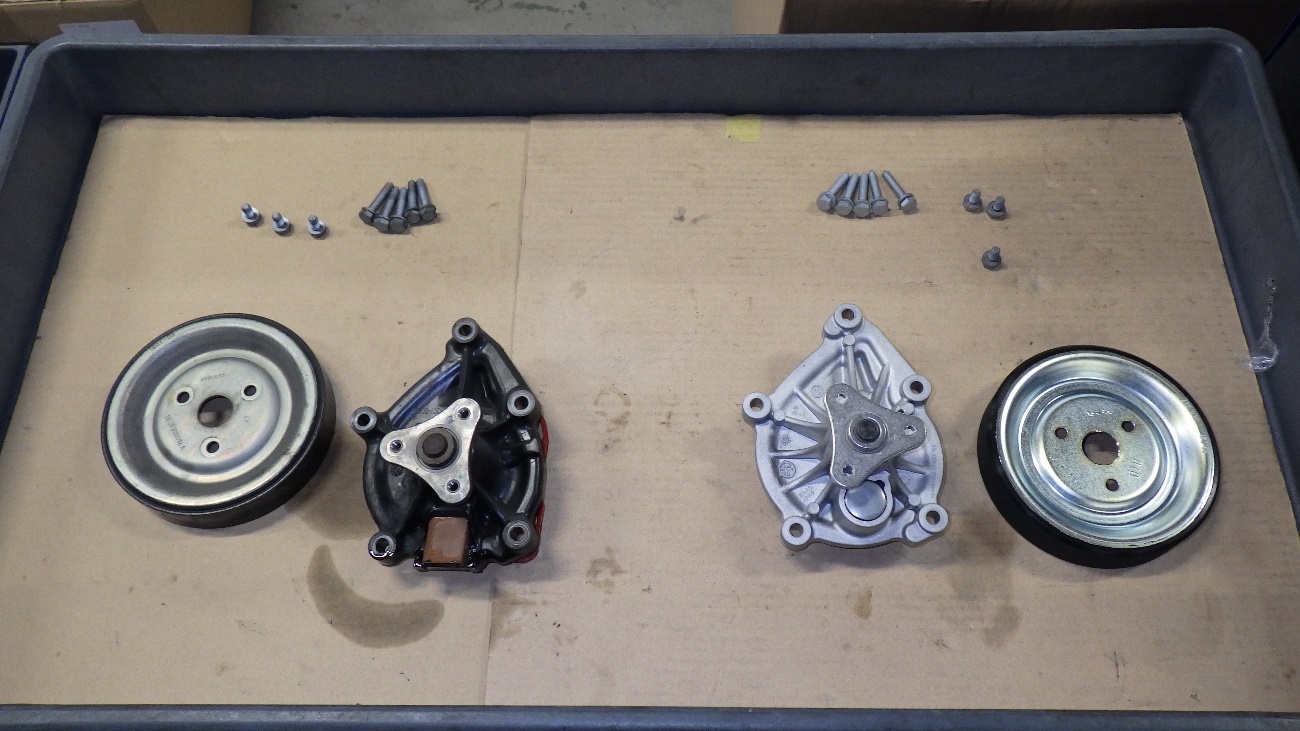 右側の新しい部品は対策されたウォーターポンプになります。