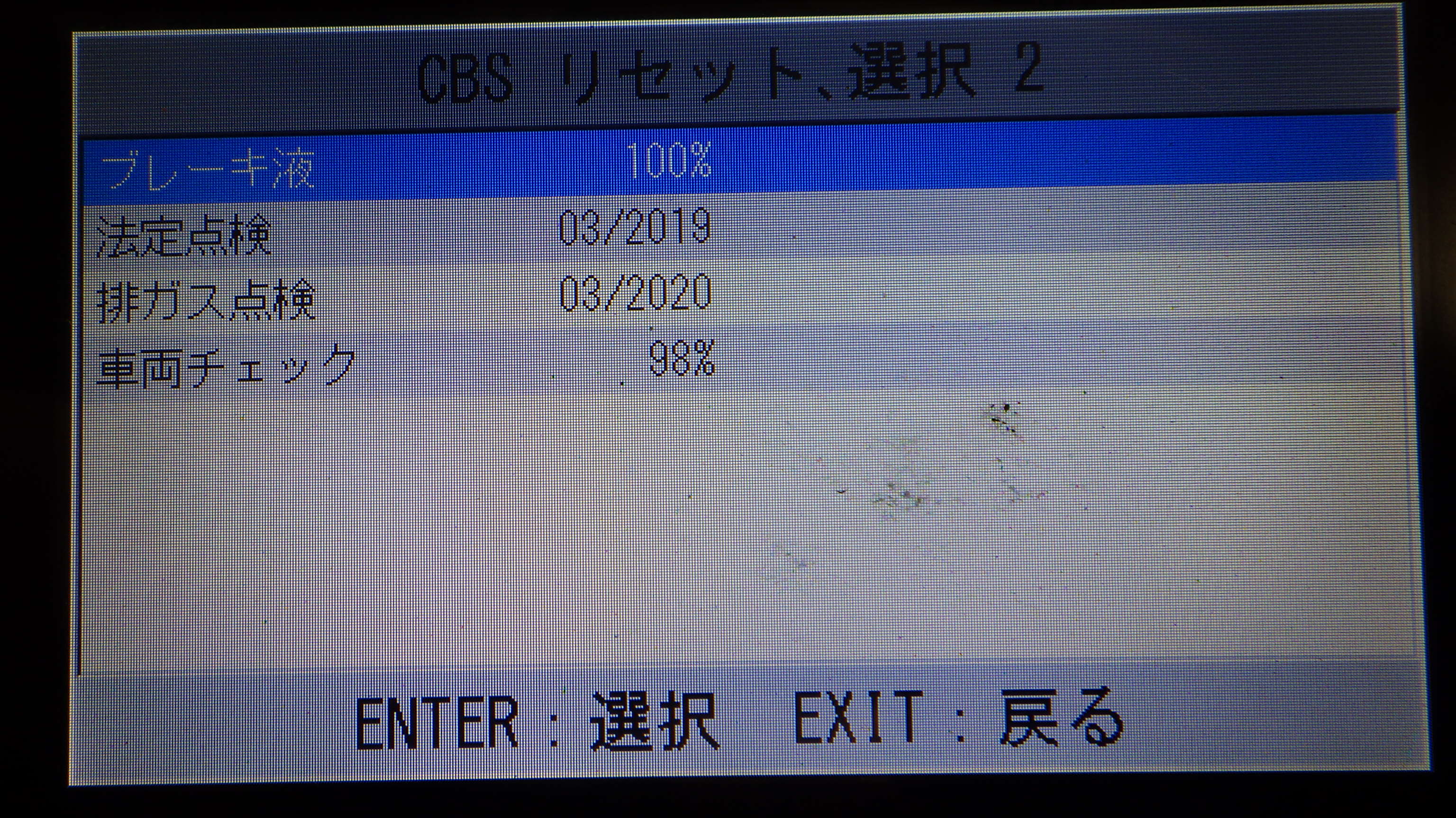テスターにて故障コードの確認と、サービスのリセットを実施しています。
