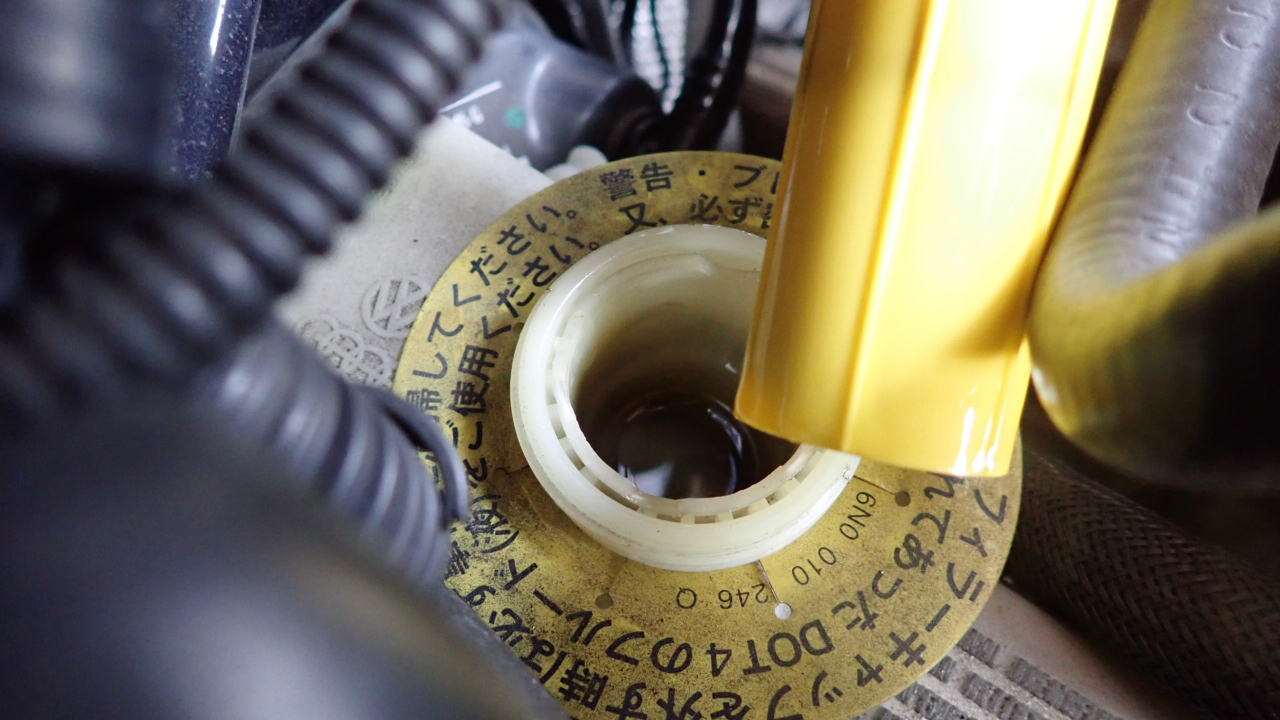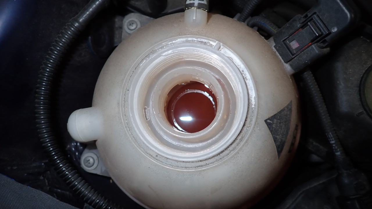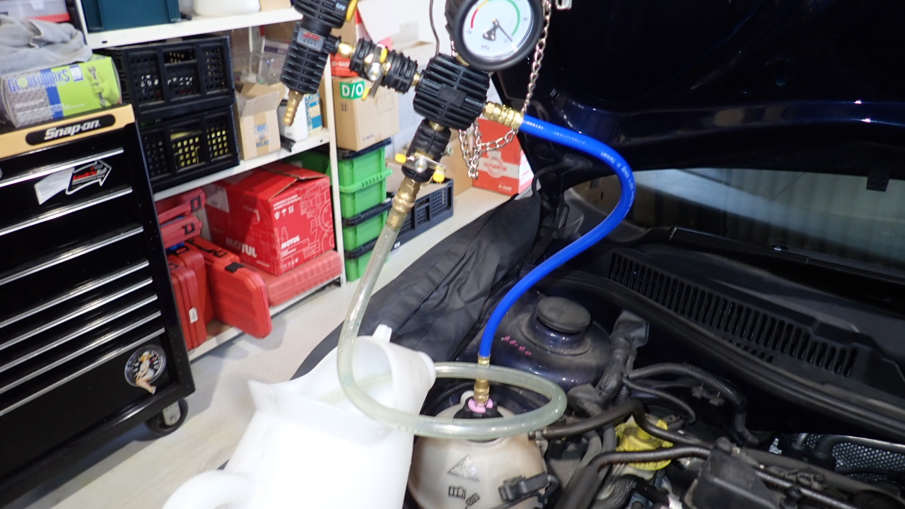 交換後冷却系統を真空にし、新品のクーラントを補充しています。