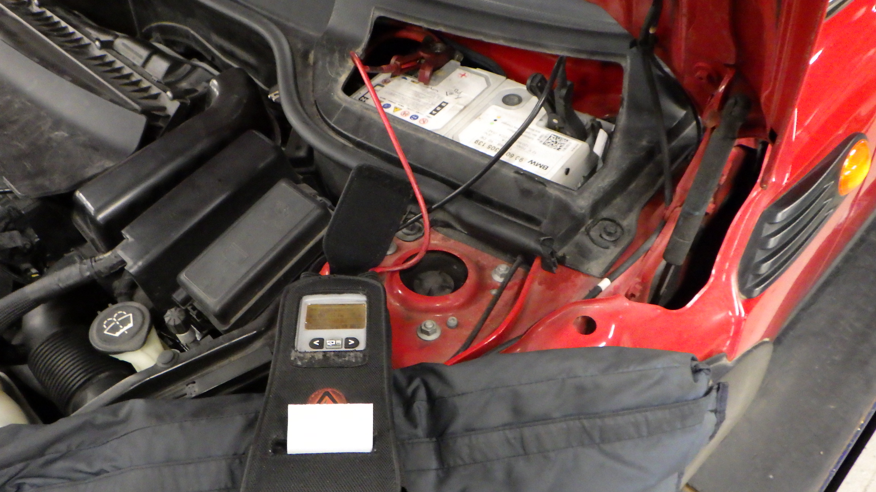 テスターにてバッテリーの点検を実施しています。