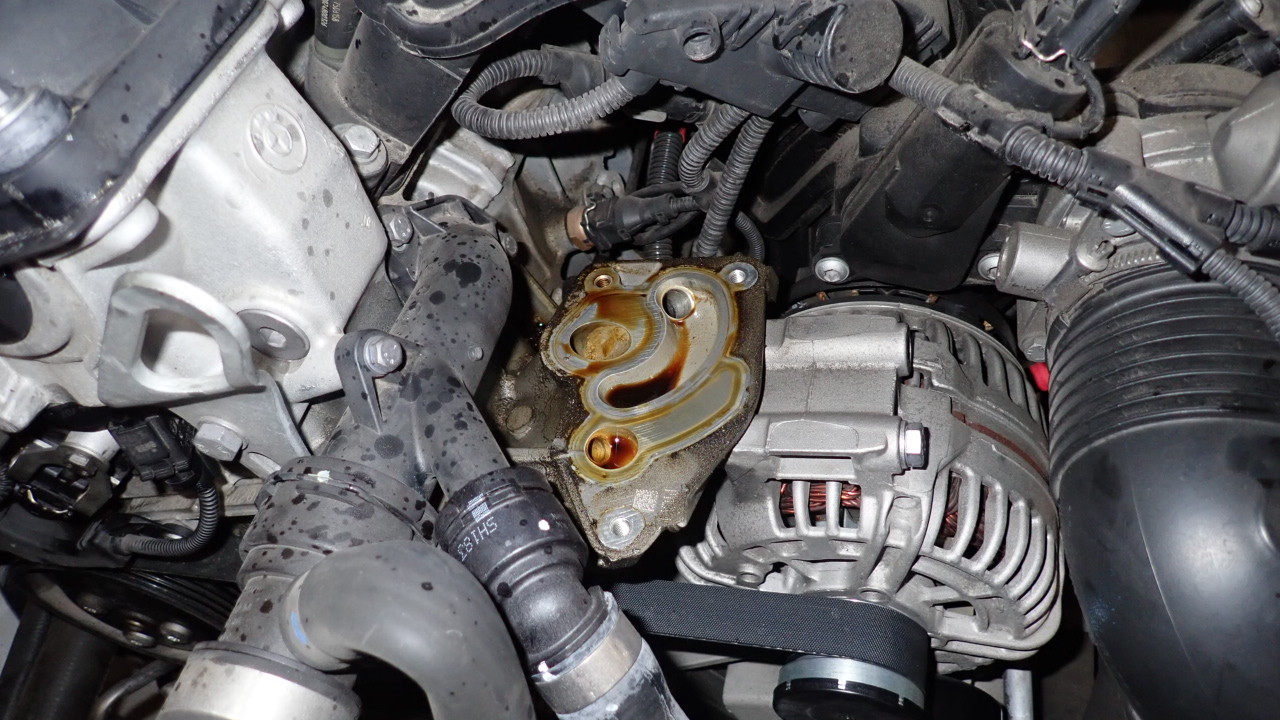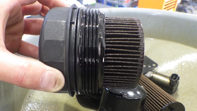オイルフィルターケースを取り外しガスケットの交換を実施しています。