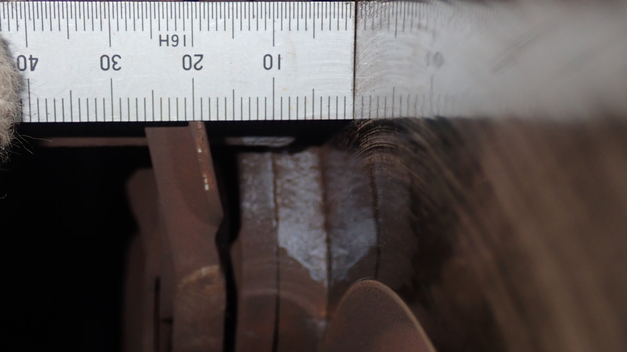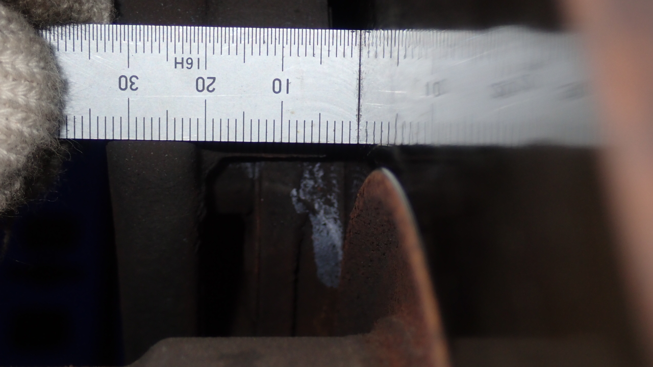 リヤブレーキパッド残量は約5.5mmです。