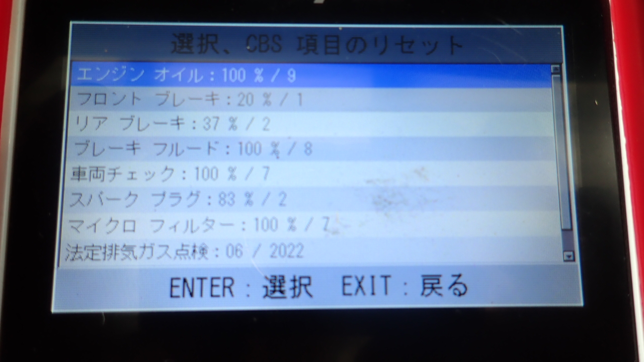 テスターにて故障コードの確認と、サービスのリセットを実施しています。