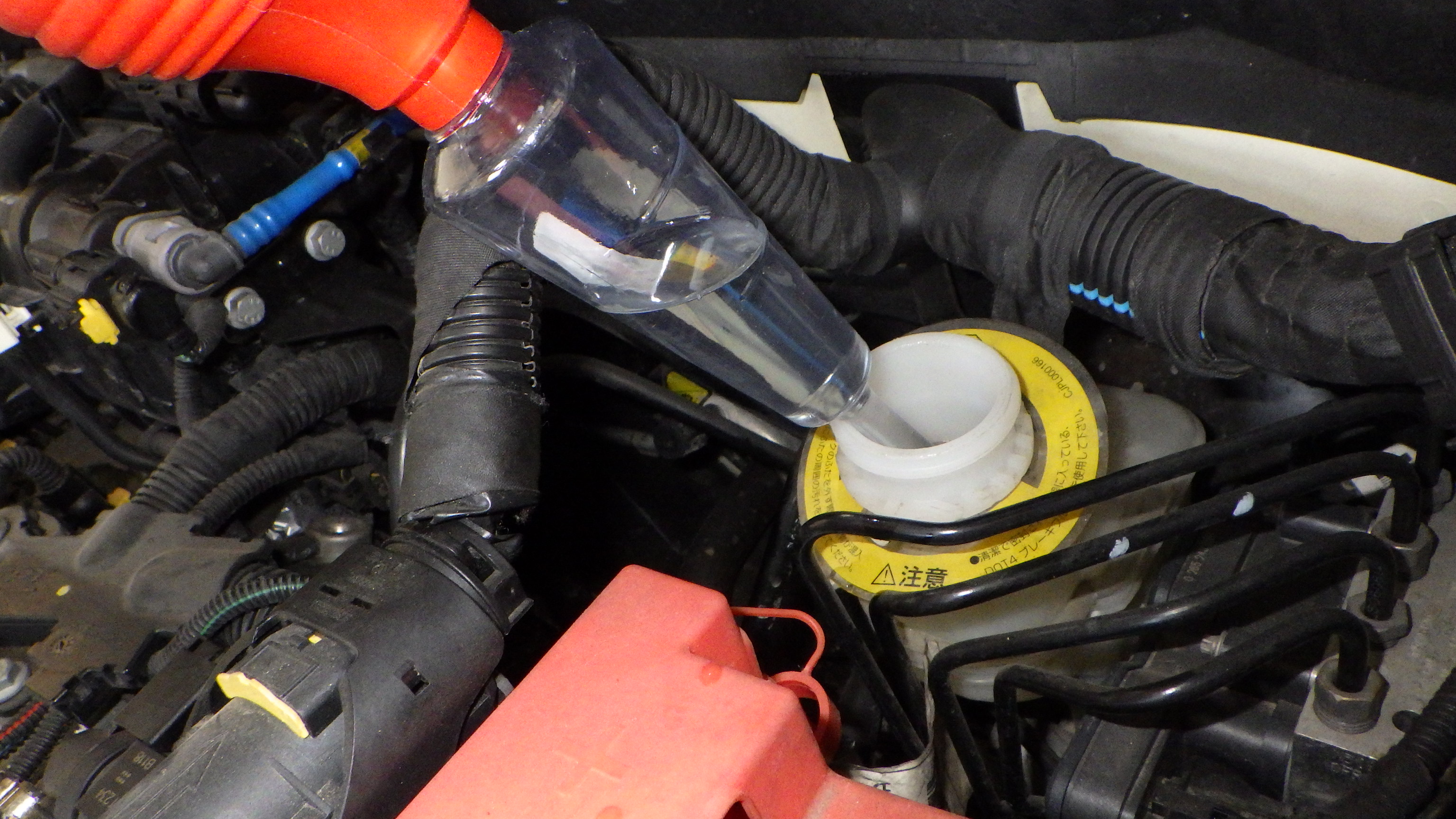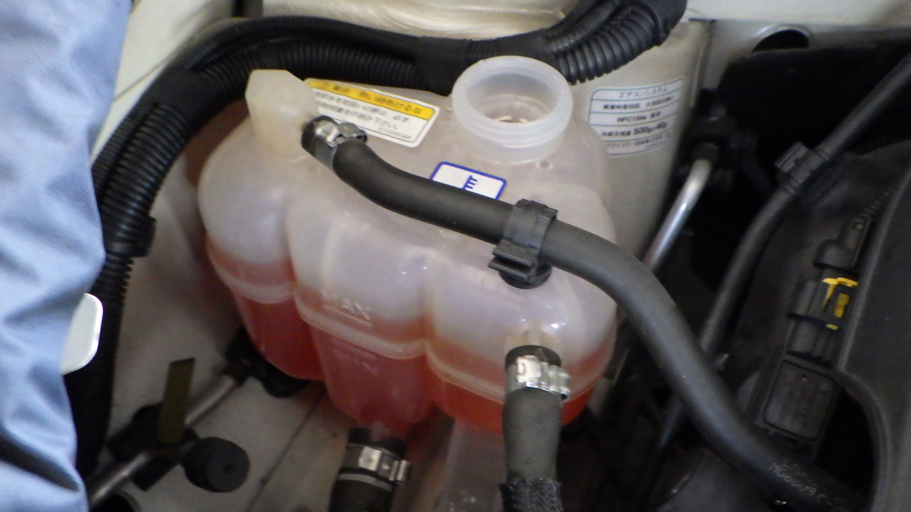 エンジン冷却水です。クーラント量、状態、各部漏れ等点検実施しています。