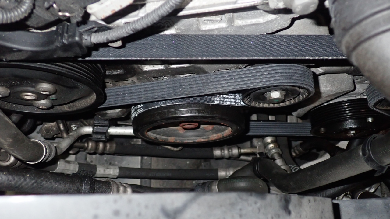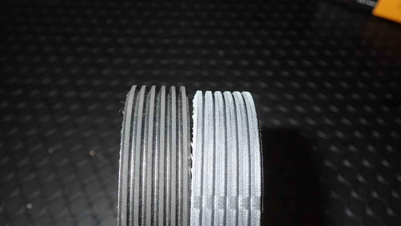 ベルトが痩せ、細かな亀裂が発生していましたので交換実施しています。