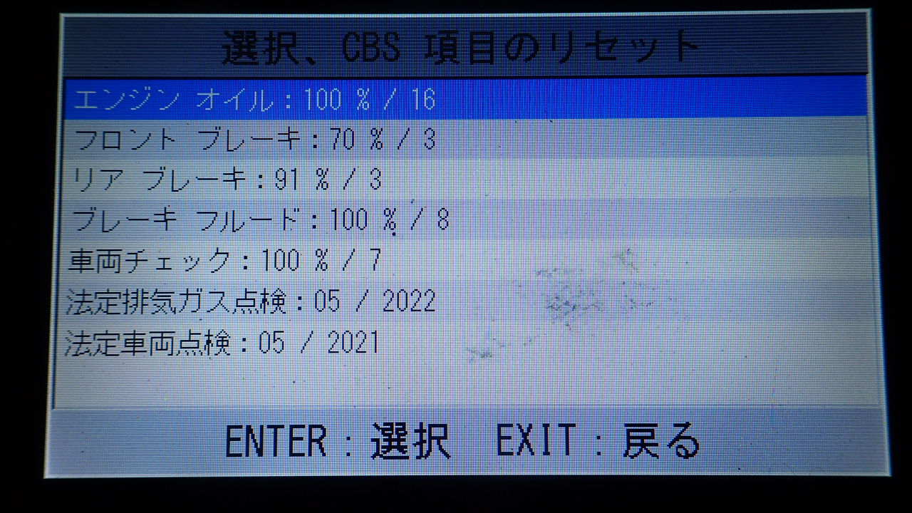 テスターにて故障コードの確認と、サービスのリセットを実施しています。