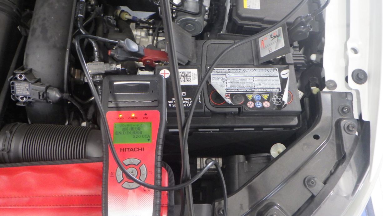 テスターにて故障コードの確認と、サービスのリセットを実施しています。