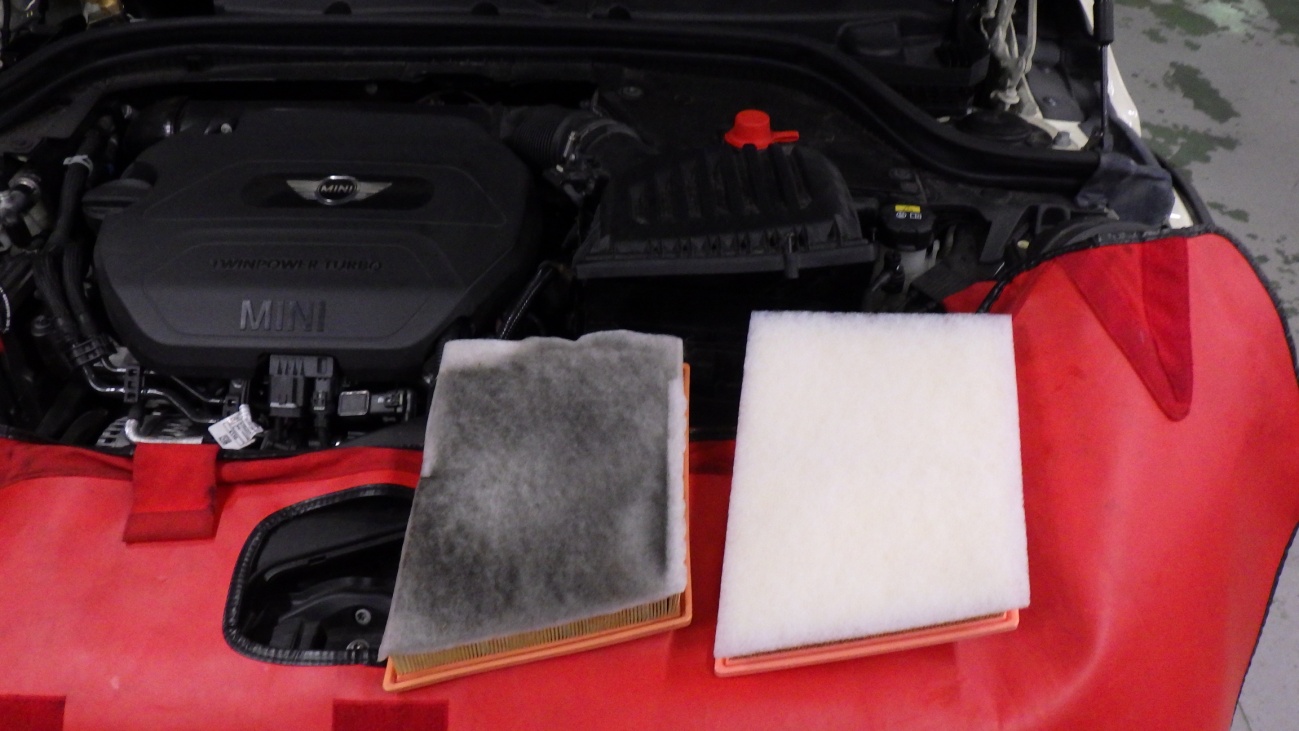エンジンルームでは、エンジンのエアクリーナーが汚れていましたので