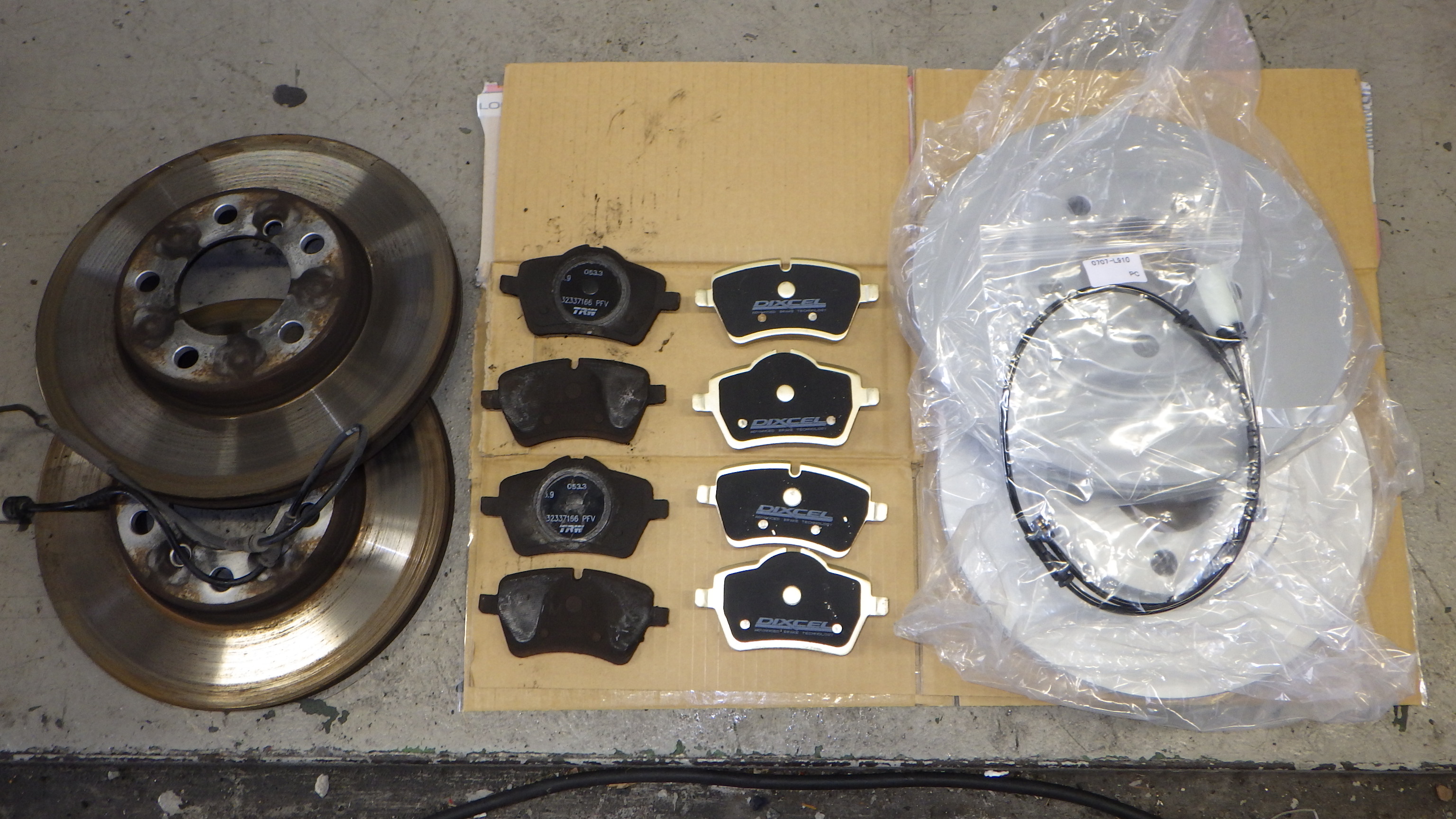 併せてブレーキディスクローター、パッドセンサーの交換も実施しています。