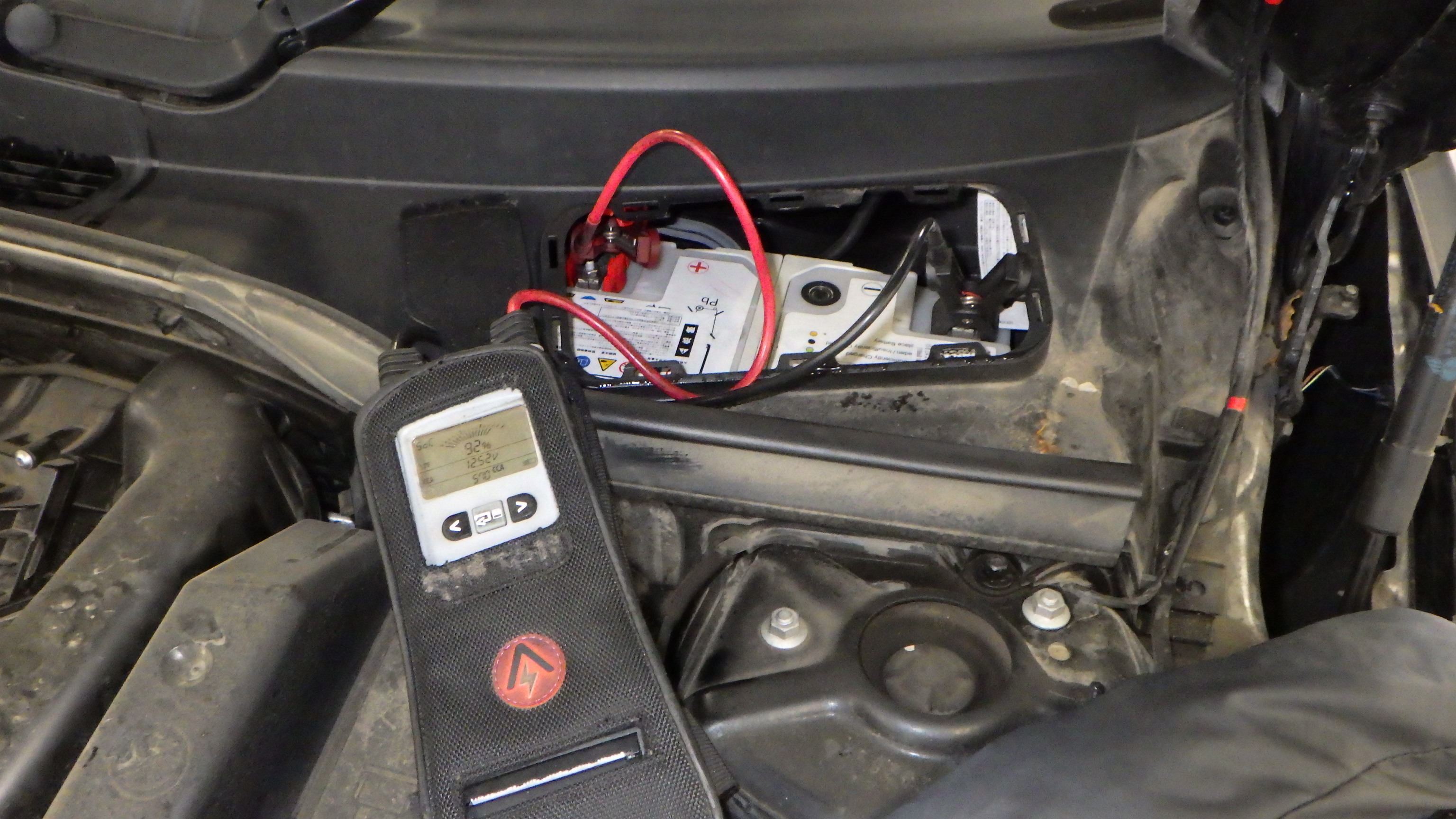 テスターにてバッテリーの点検を実施しています。