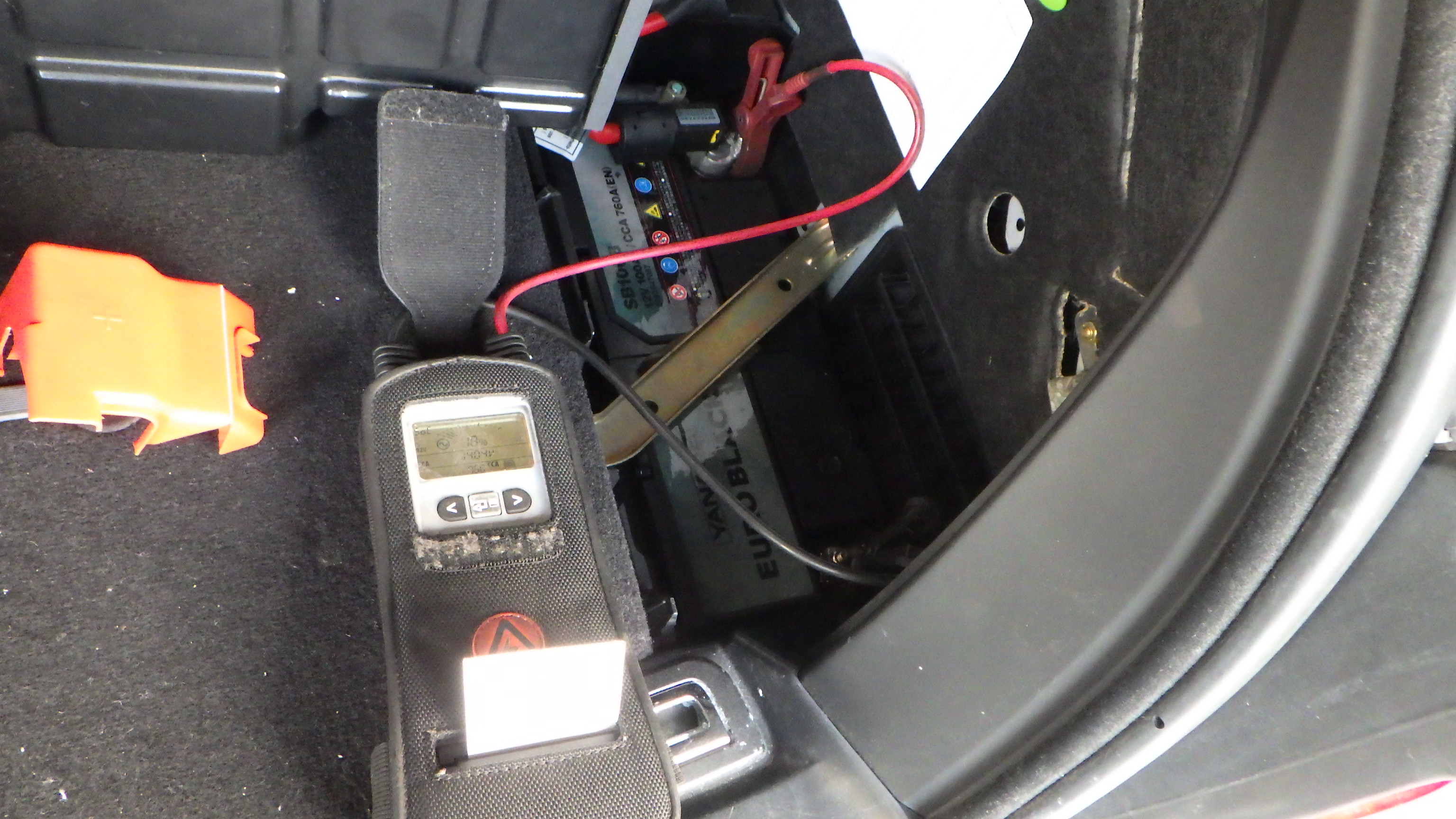 テスターにてバッテリーの点検を実施しています。