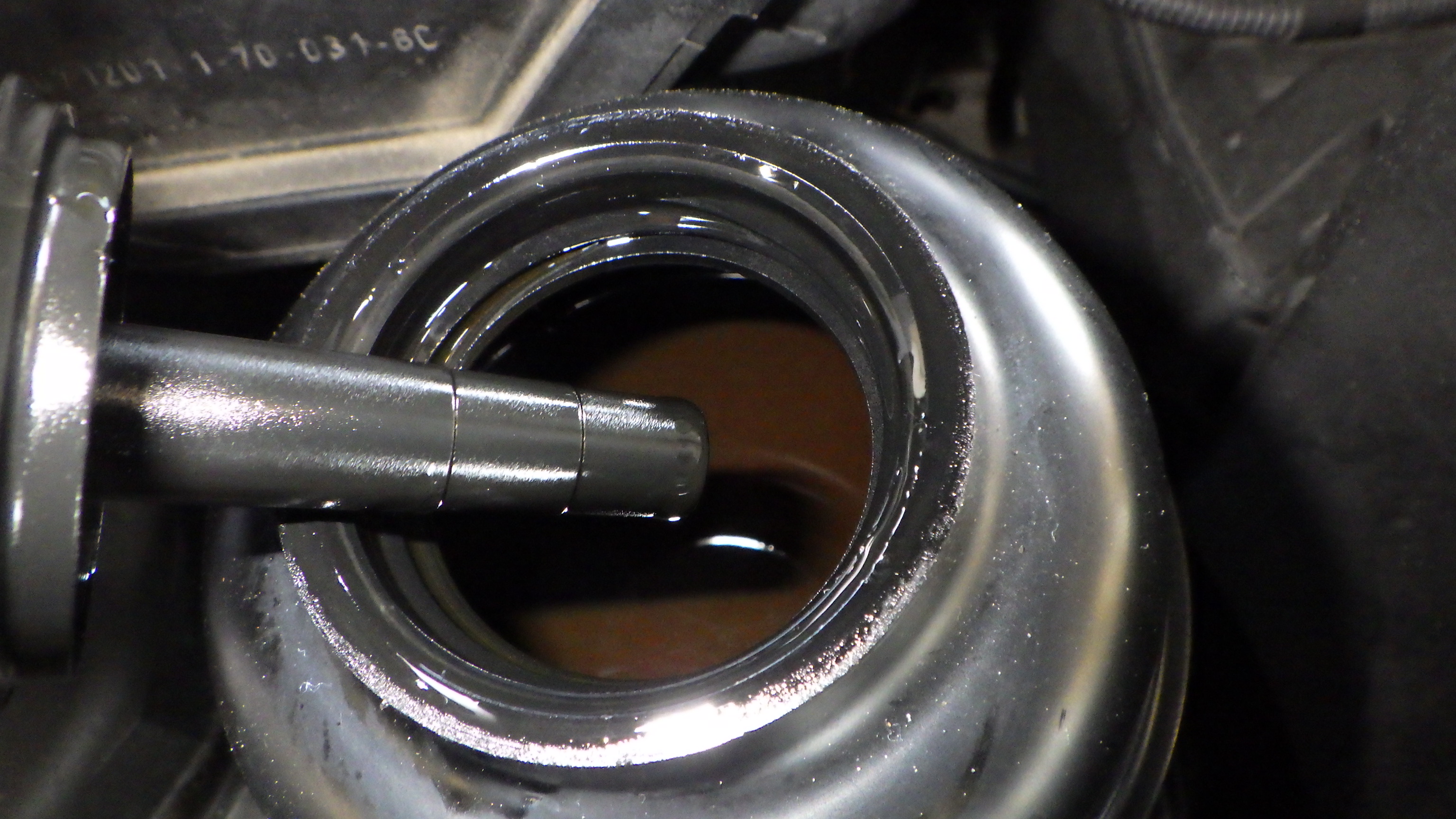 交換前、交換後のオイルです。交換後オイル量の点検も実施しています。