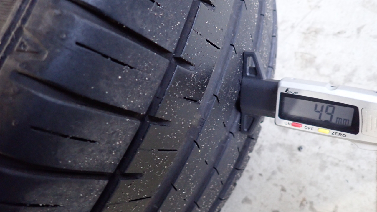 リヤタイヤ残量は約4.9mmです。