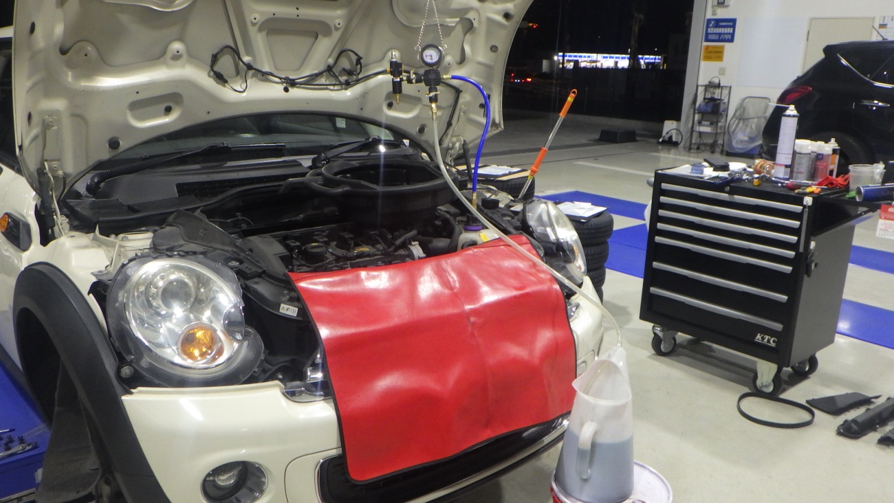 I様 BMWミニ オイル、LLC漏れ修理レポート 75256 km この度はご入庫ありがとうございます。 エンジンオイル、クーラント漏れの修理作業に取り掛かって…