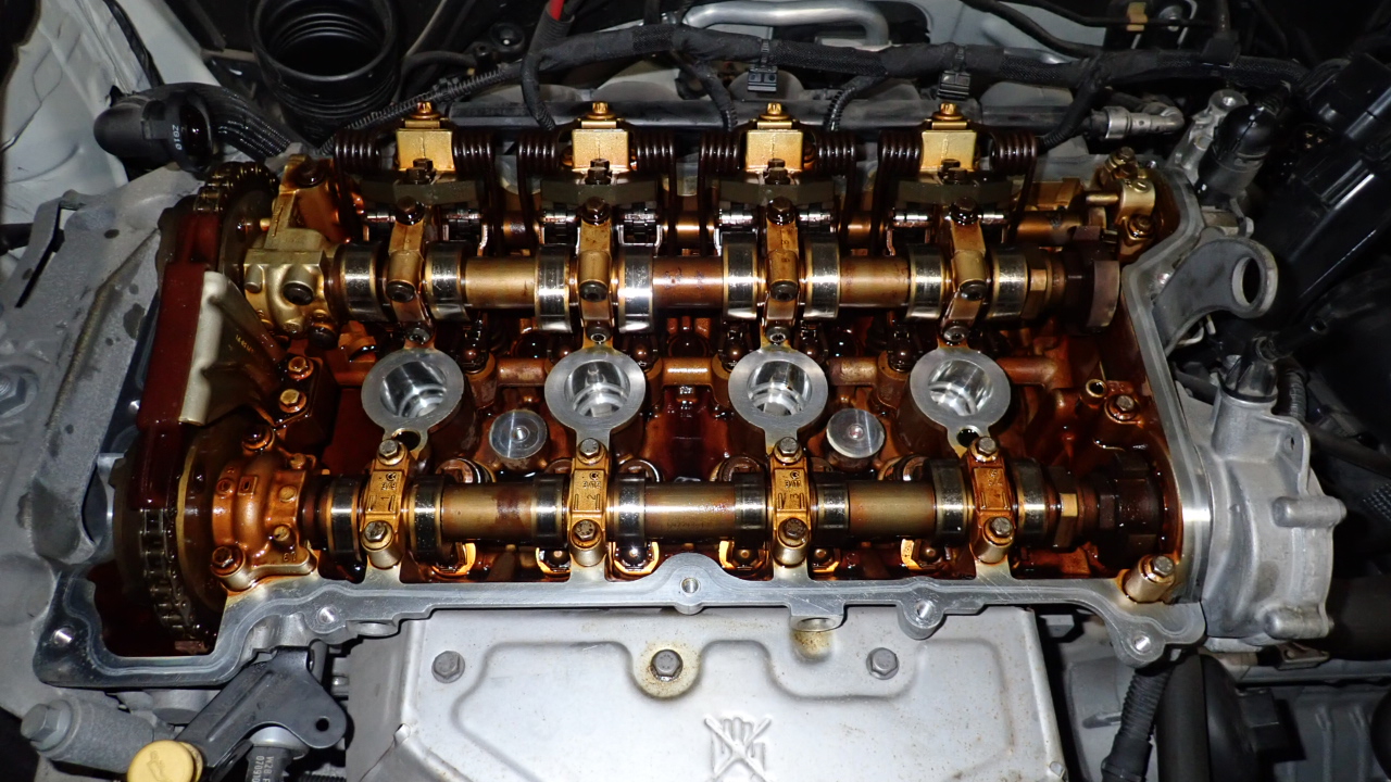 シリンダーヘッドカバーを取り外し、ガスケットの交換を実施しています。