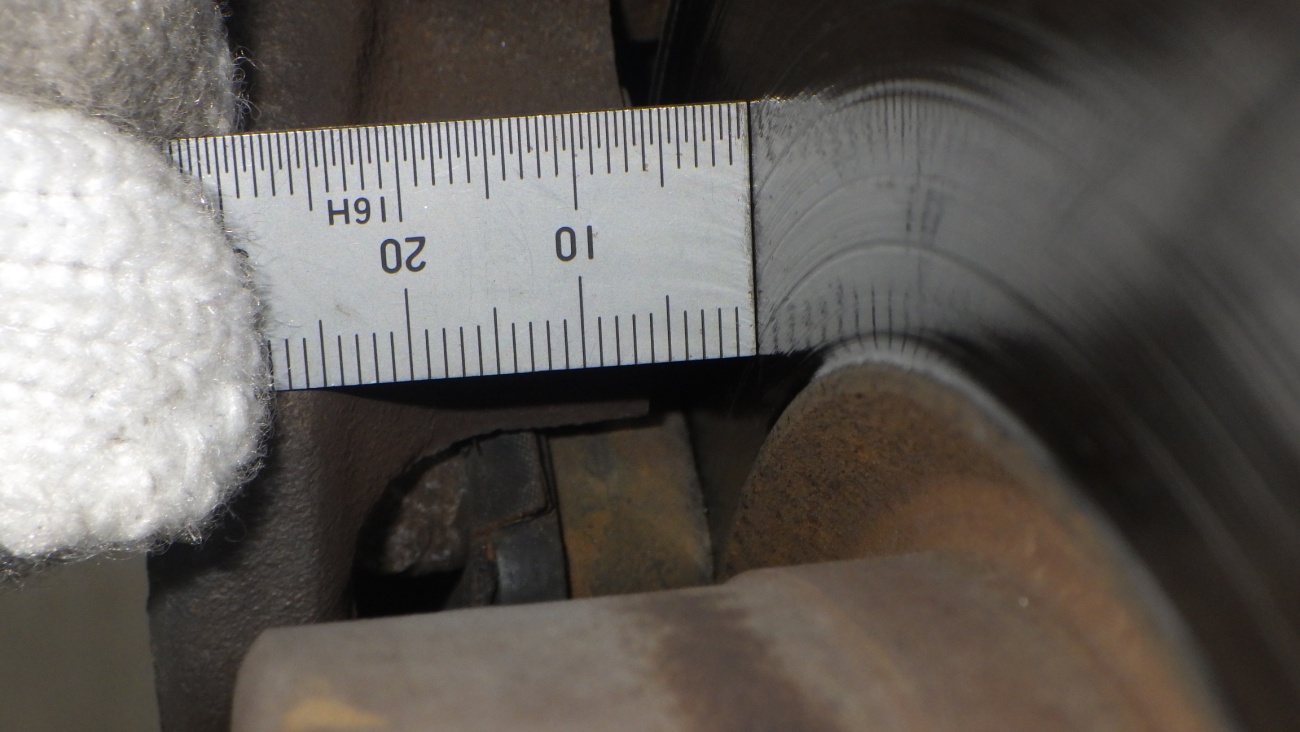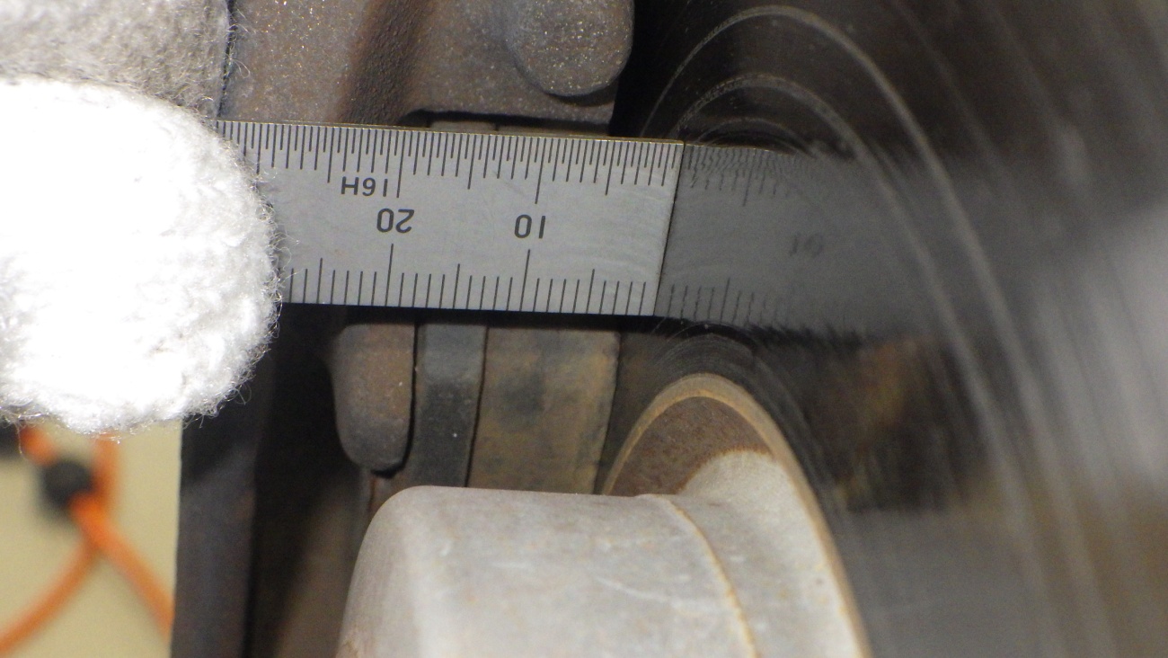 フロントブレーキパッド残量は約9.5mmです。