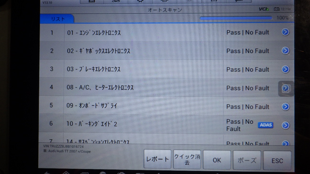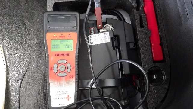 テスターにて故障コードの確認と、サービスのリセットを実施しています。