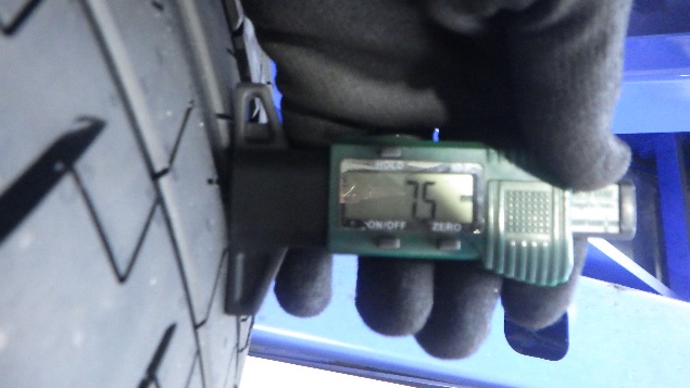 交換後のタイヤです。タイヤ溝の残量は約7.5mmです。