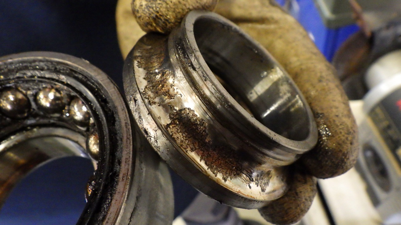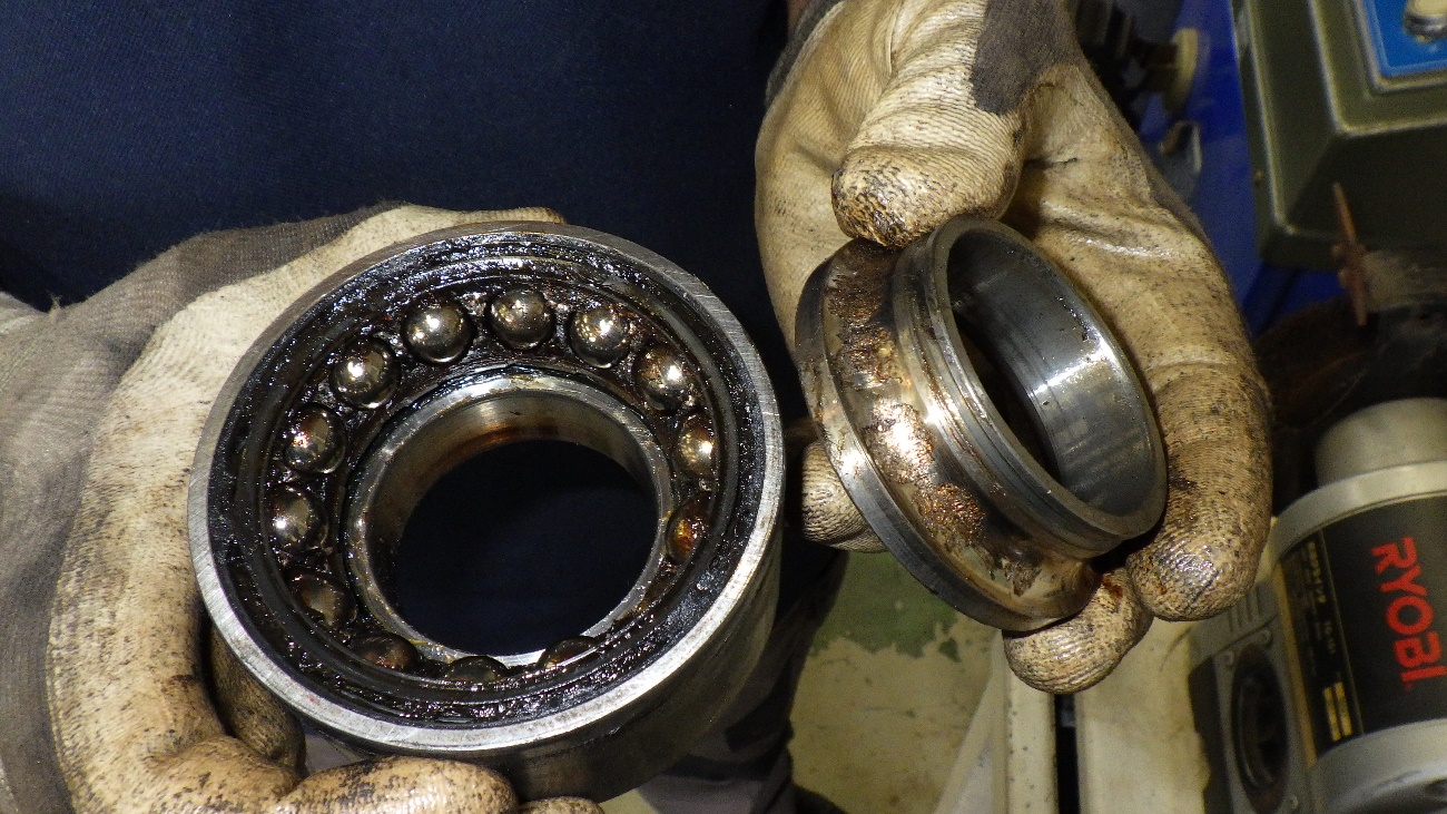 拡大図になります。ボールの外周が完全に摩耗しておりました。
