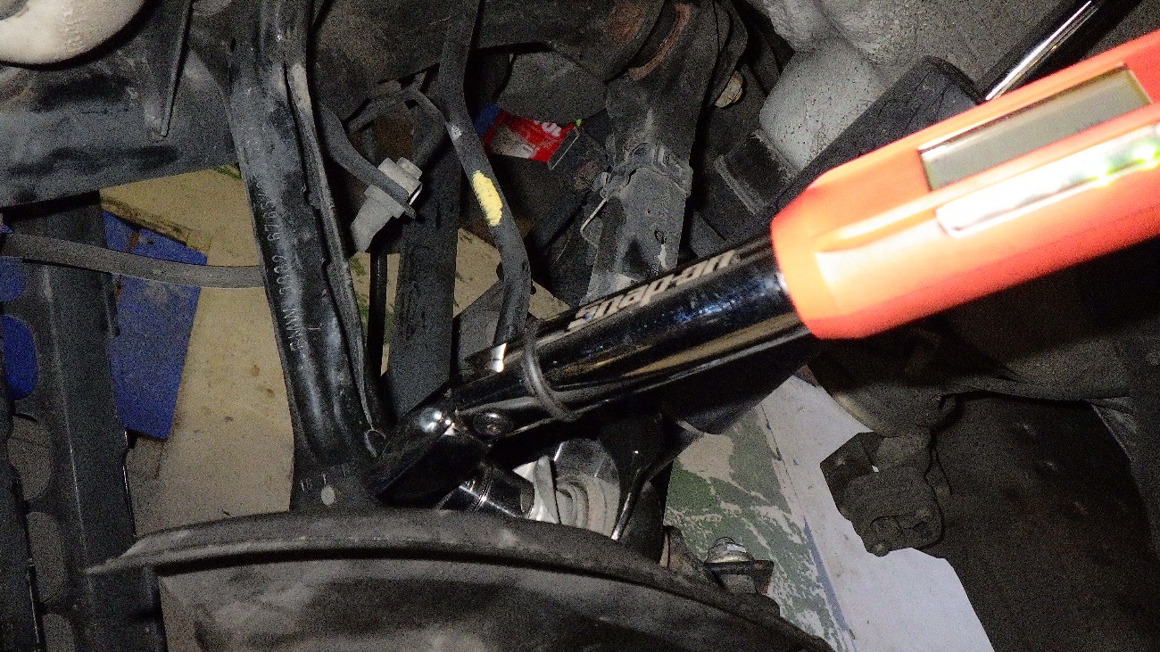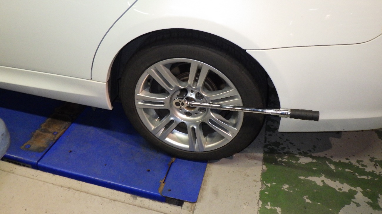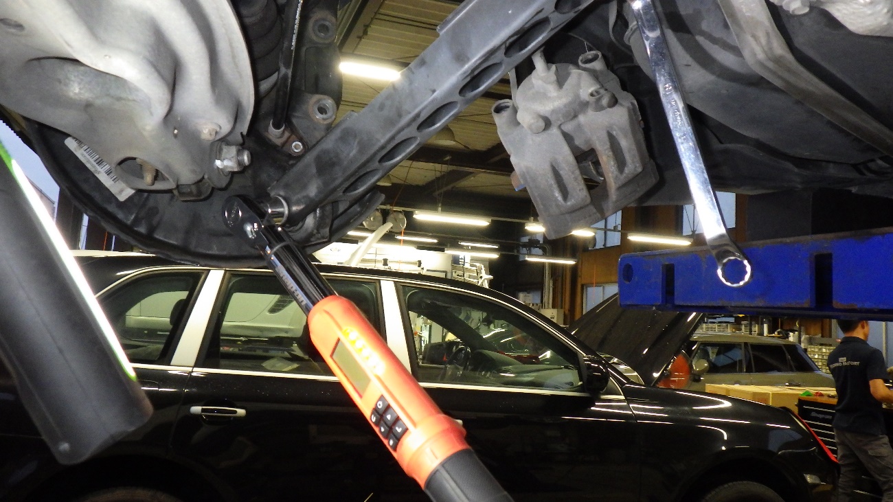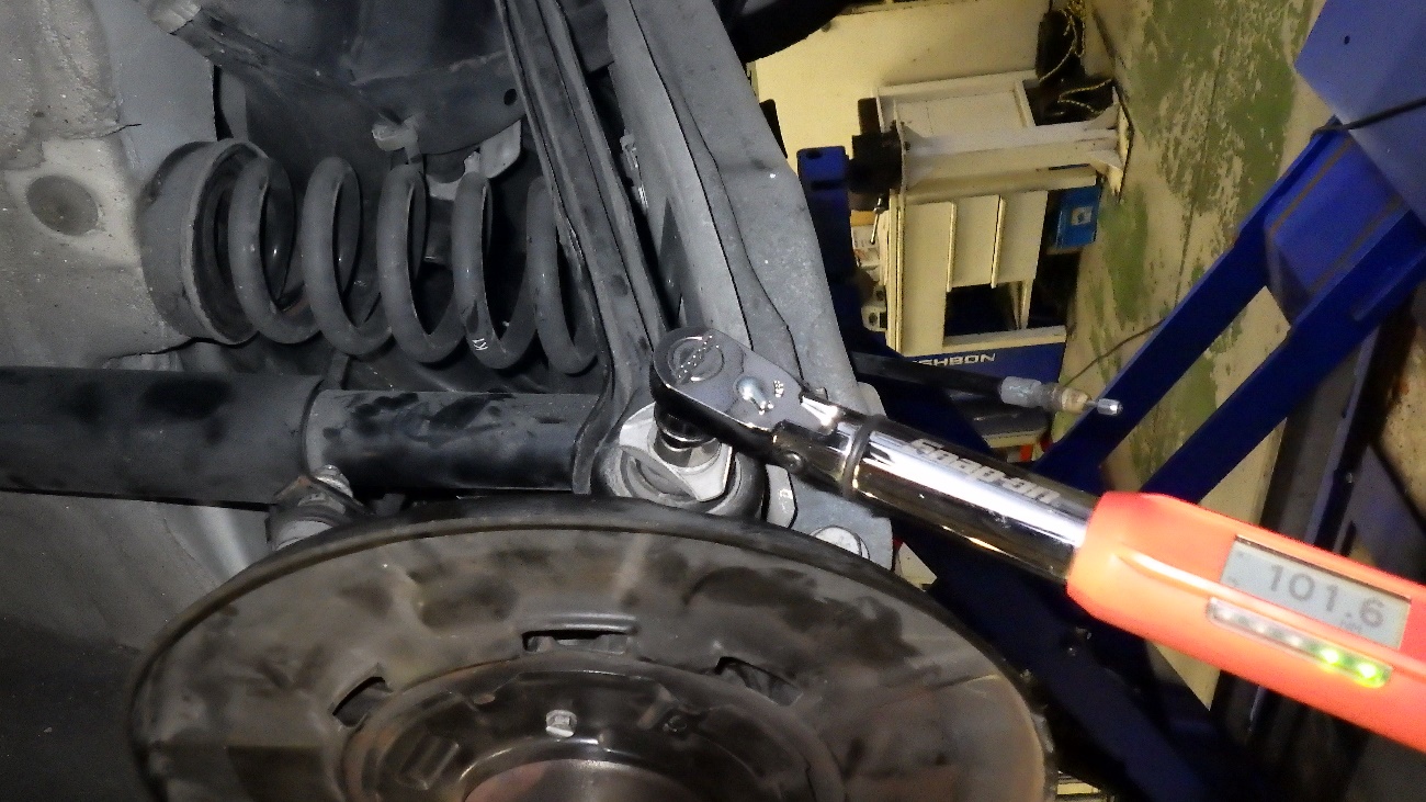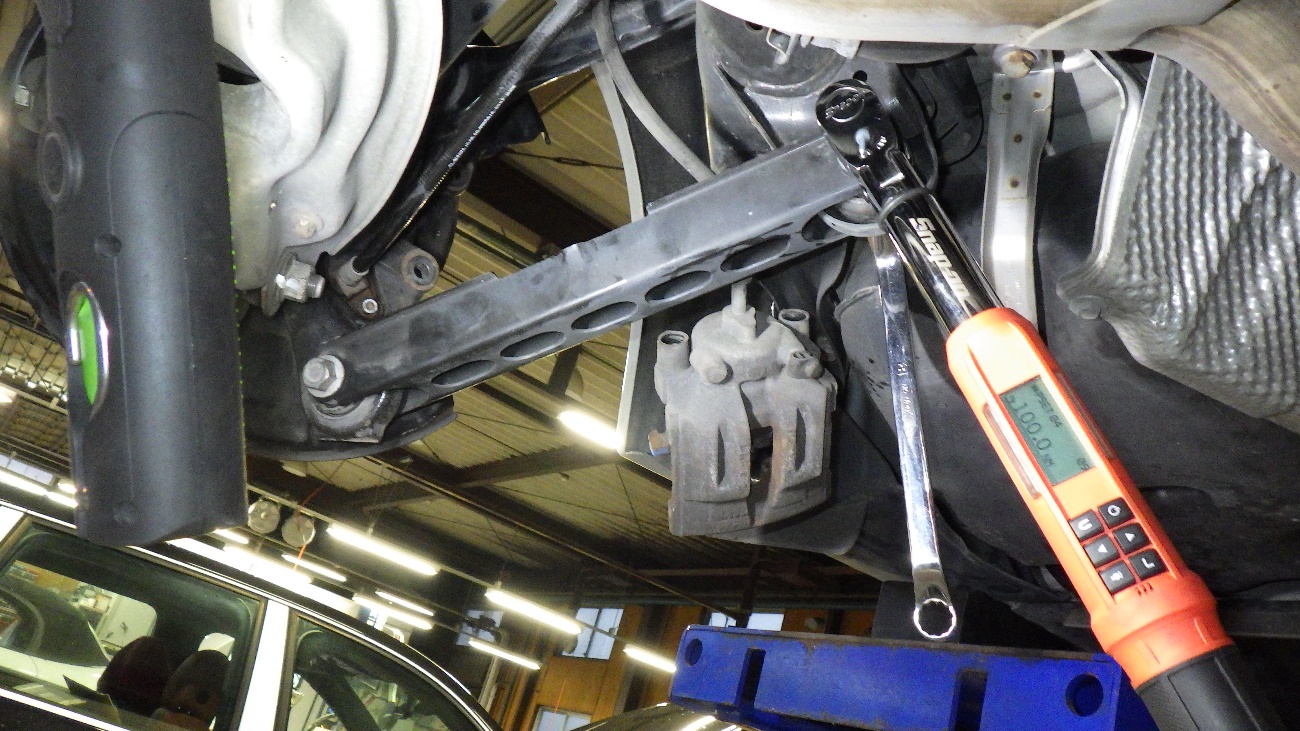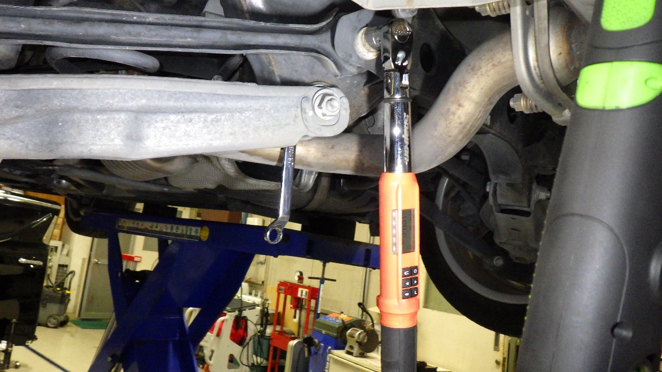 テンションロッドの締め付けを規定トルクにて締め付けております。