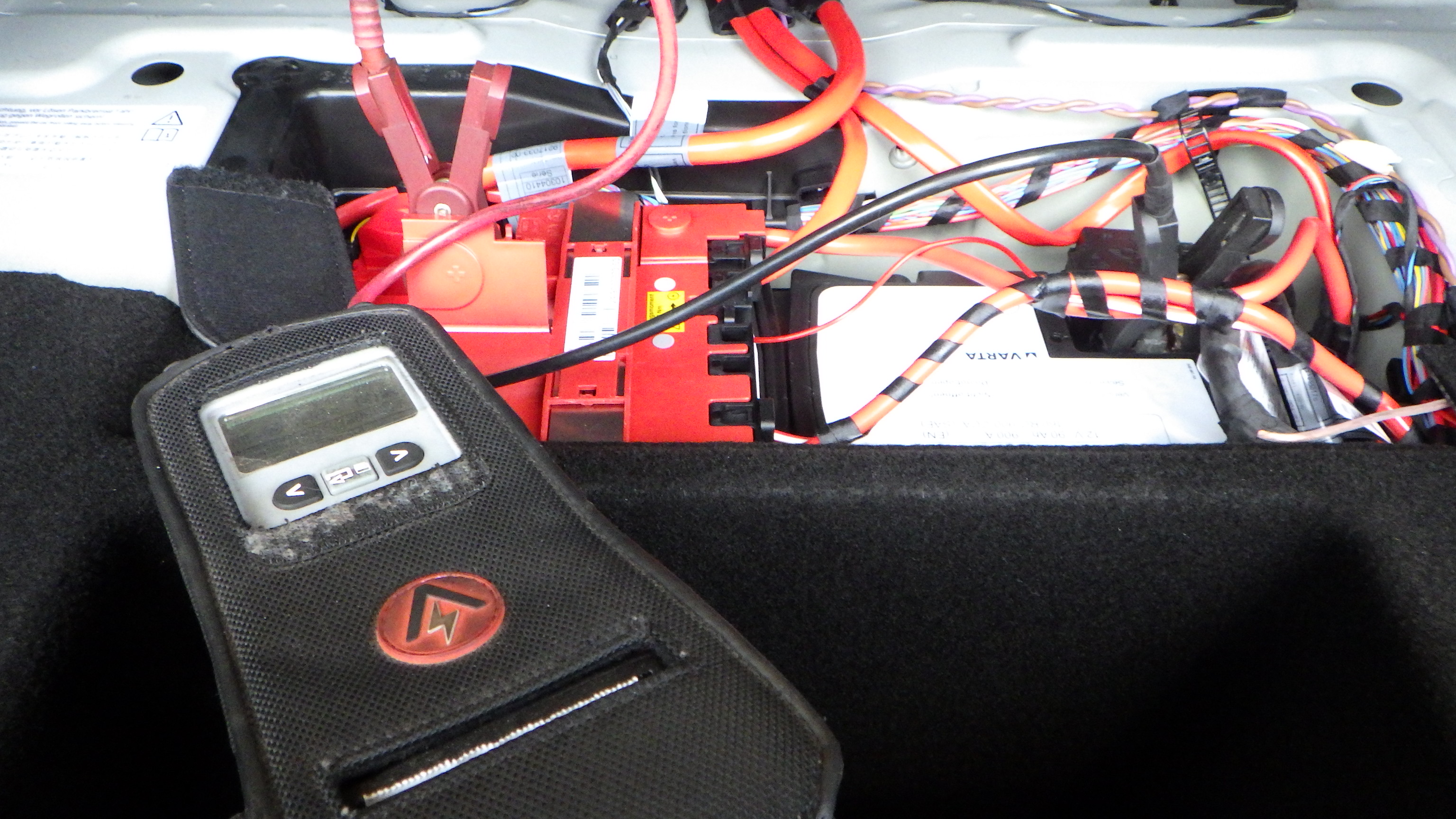 テスターにてバッテリーの点検を実施しています。