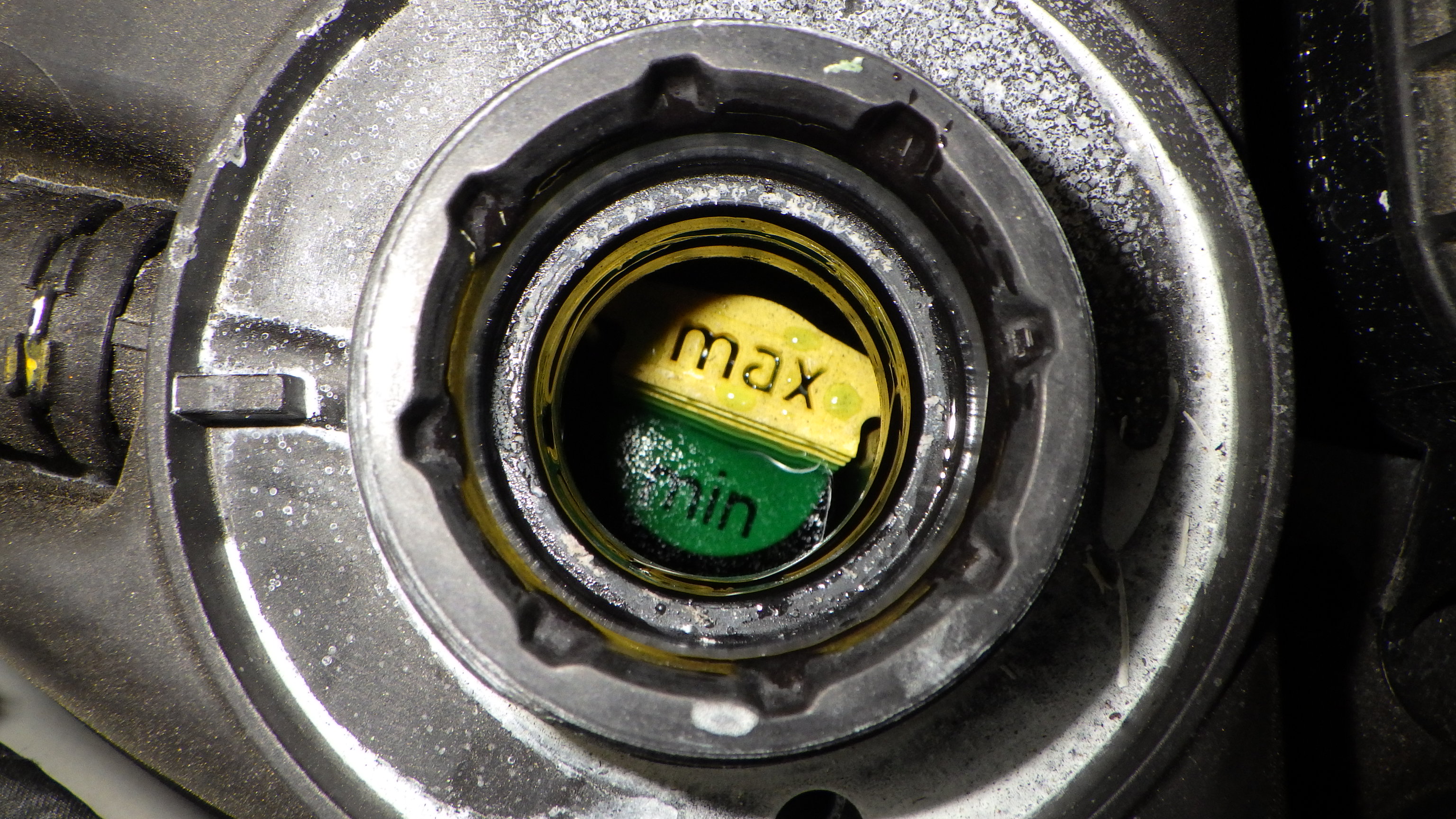 エンジン冷却水です。クーラント量、状態、各部漏れ等点検しています。