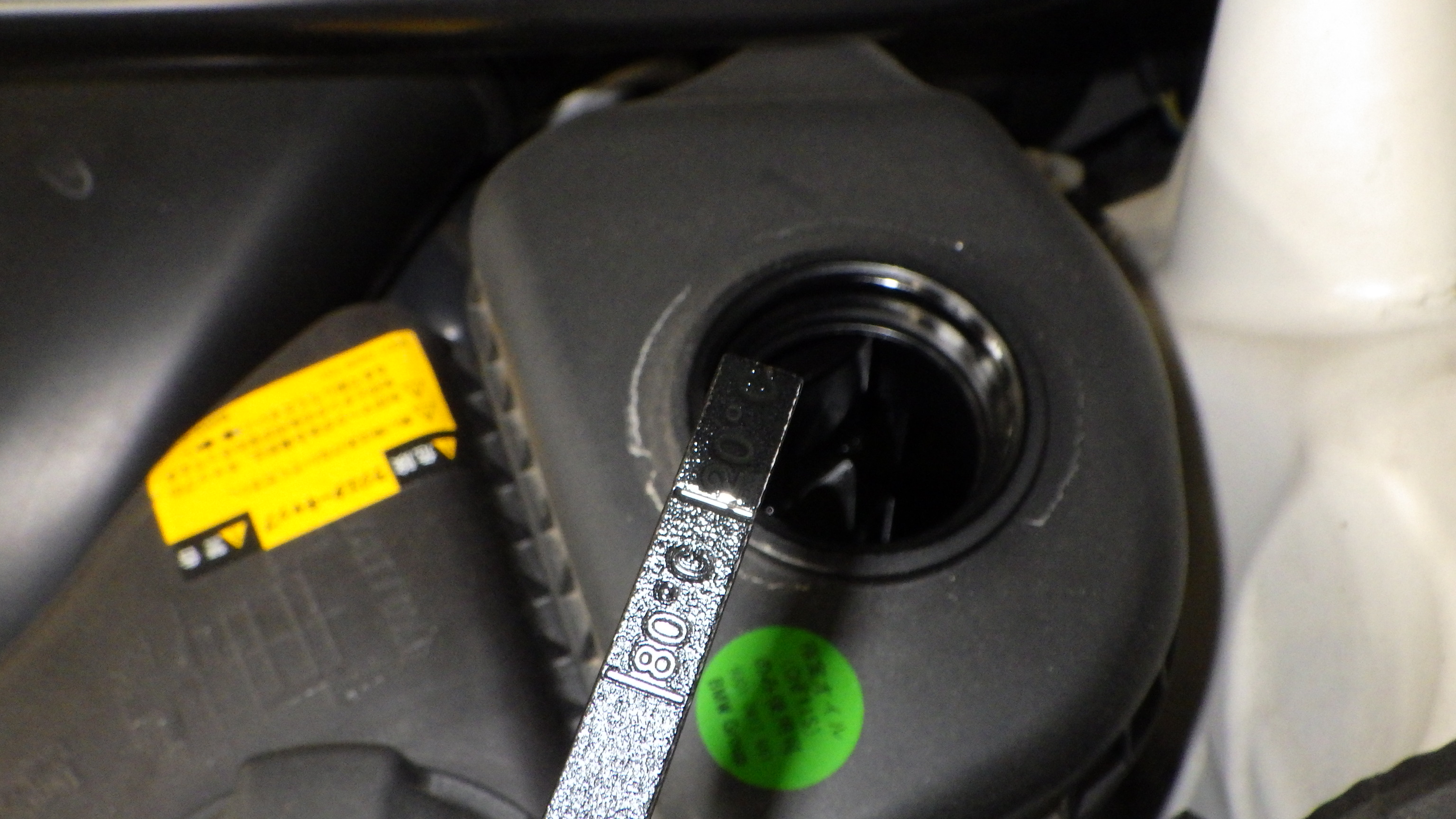 交換前、交換後のオイルです。交換後オイル量の点検も実施しています。