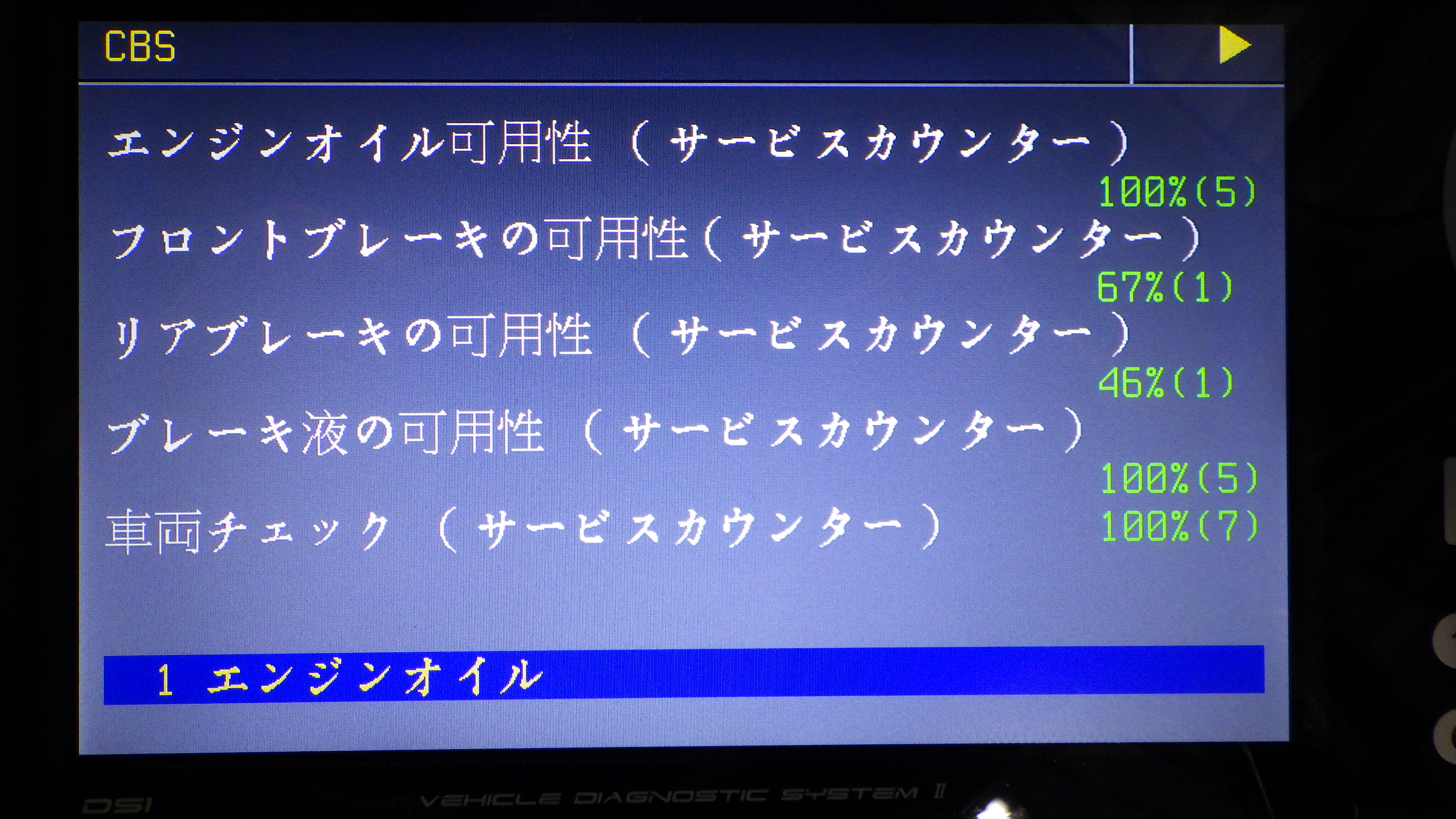 テスターにて故障コードの確認と、サービスのリセットを実施しています。