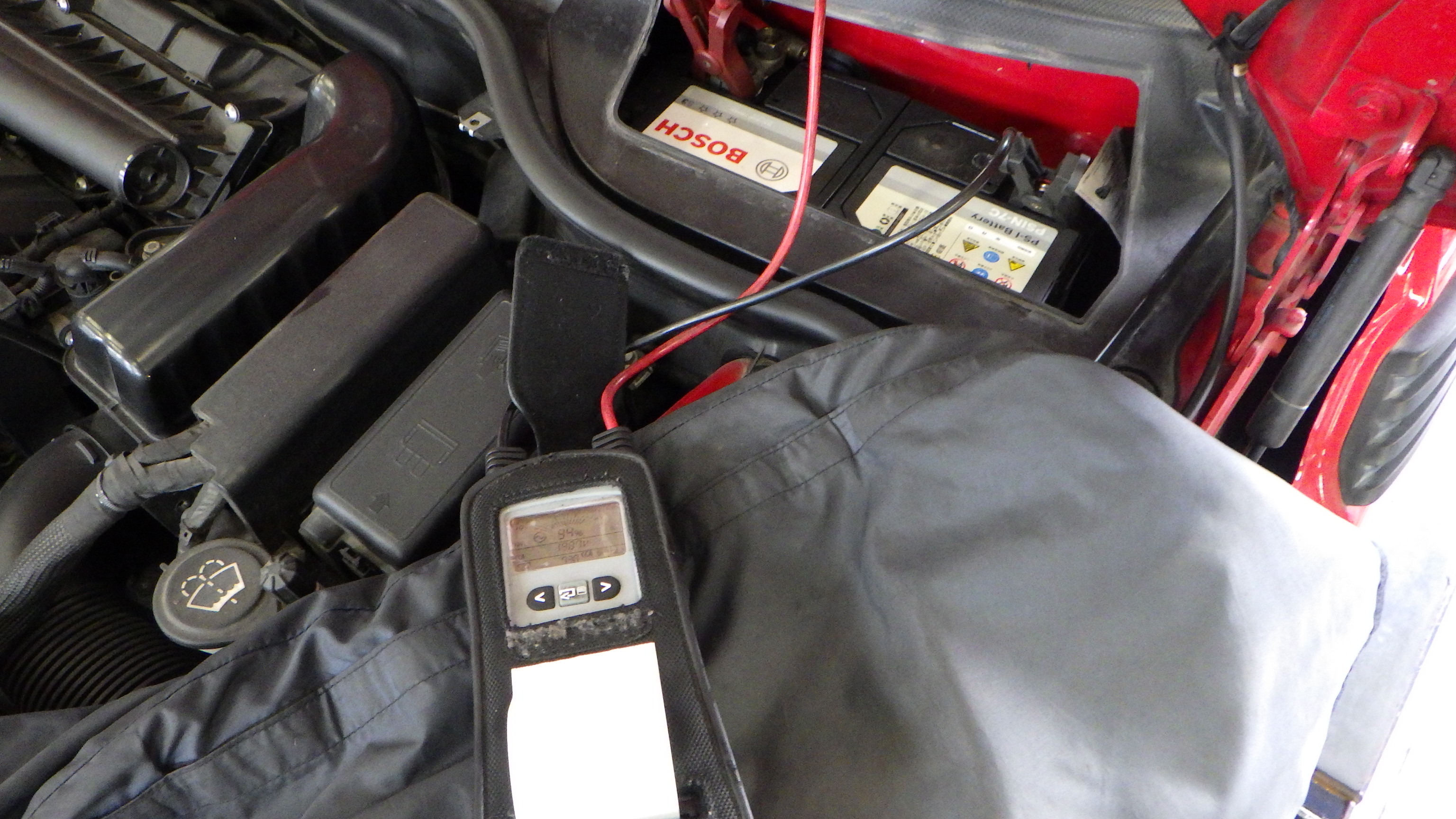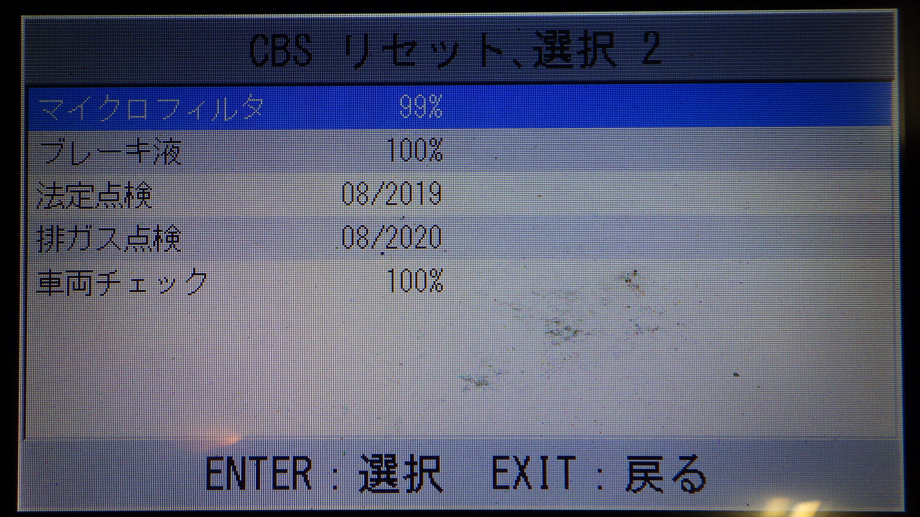 テスターにて故障コードの確認と、サービスのリセットを実施しています。