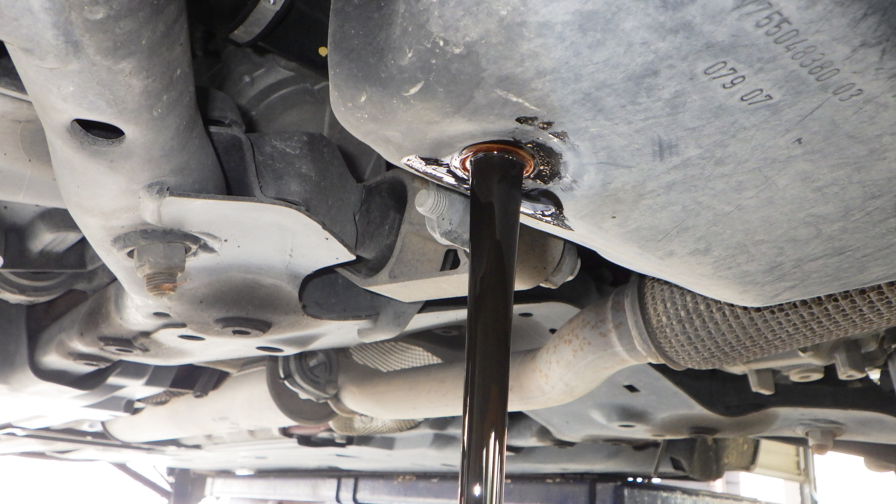 交換前、交換後のオイルです。交換後オイル量の点検も実施しています。