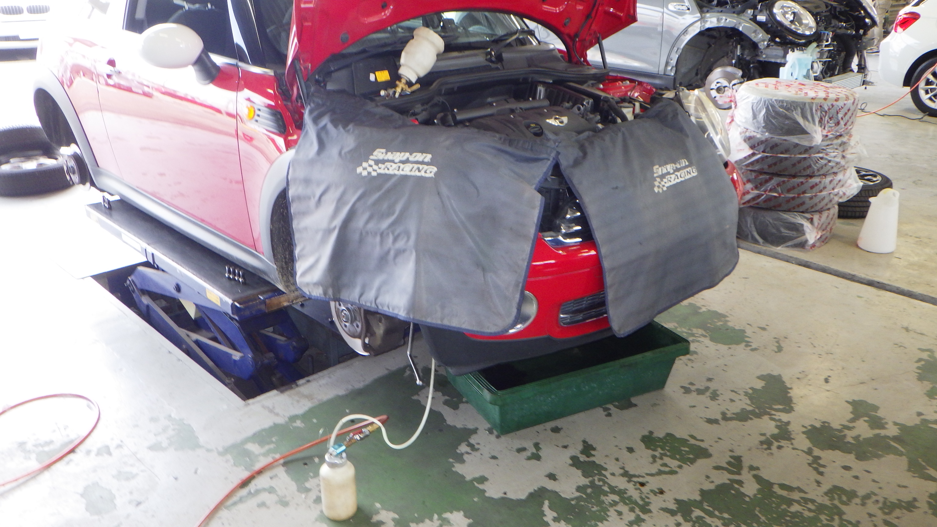 I様 BMWミニ オイル、LLC漏れ修理レポート 75256 km この度はご入庫ありがとうございます。 エンジンオイル、クーラント漏れの修理作業に取り掛かって…