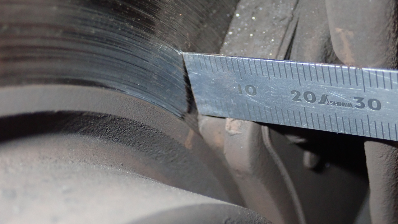 リヤブレーキパッド残量は約5.0mmです。