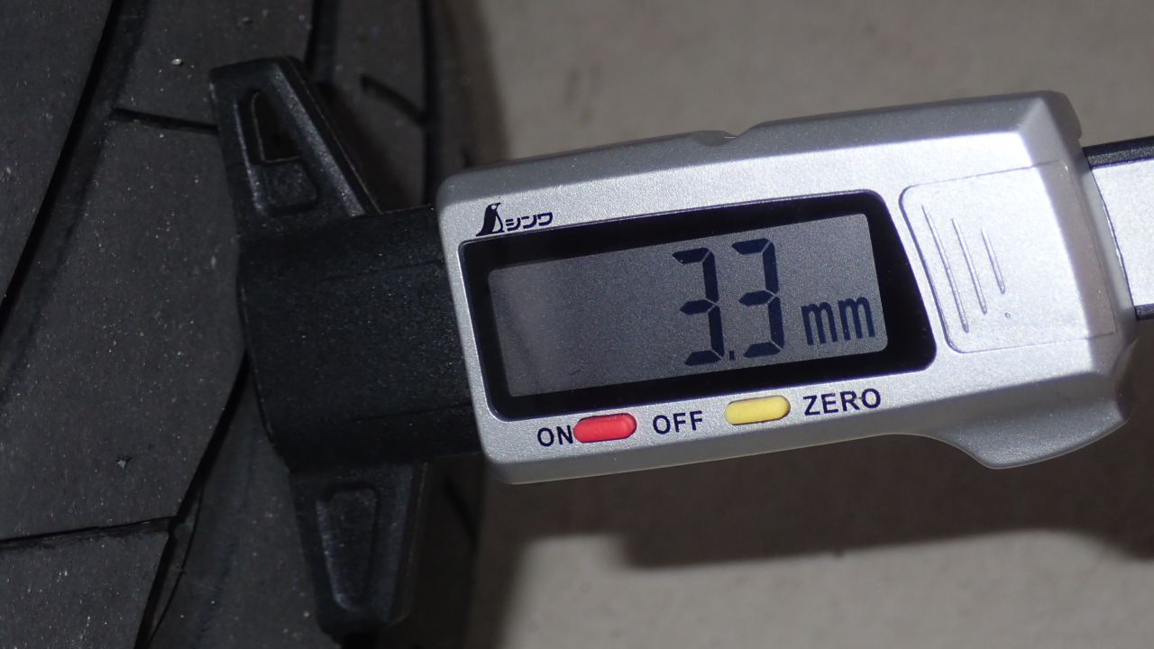 フロントタイヤ残量は約3.3mmです。