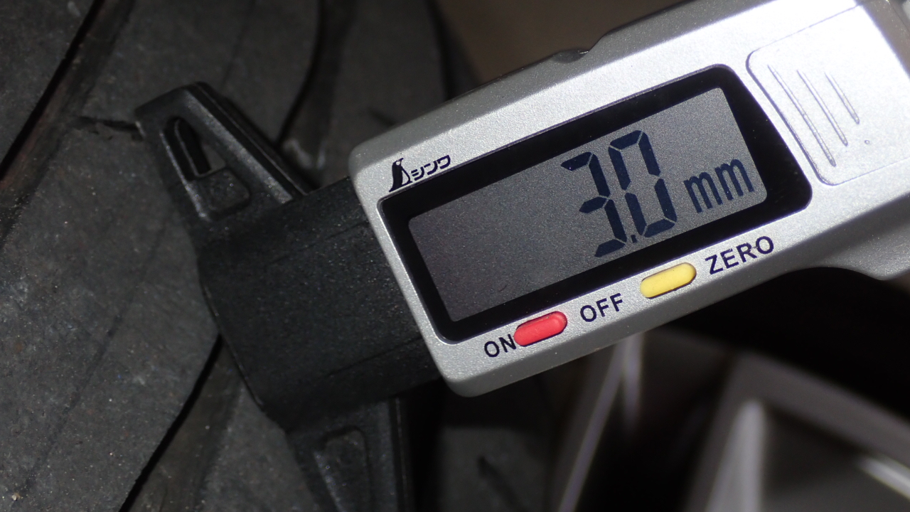 リヤタイヤ残量は約3.0mmです。