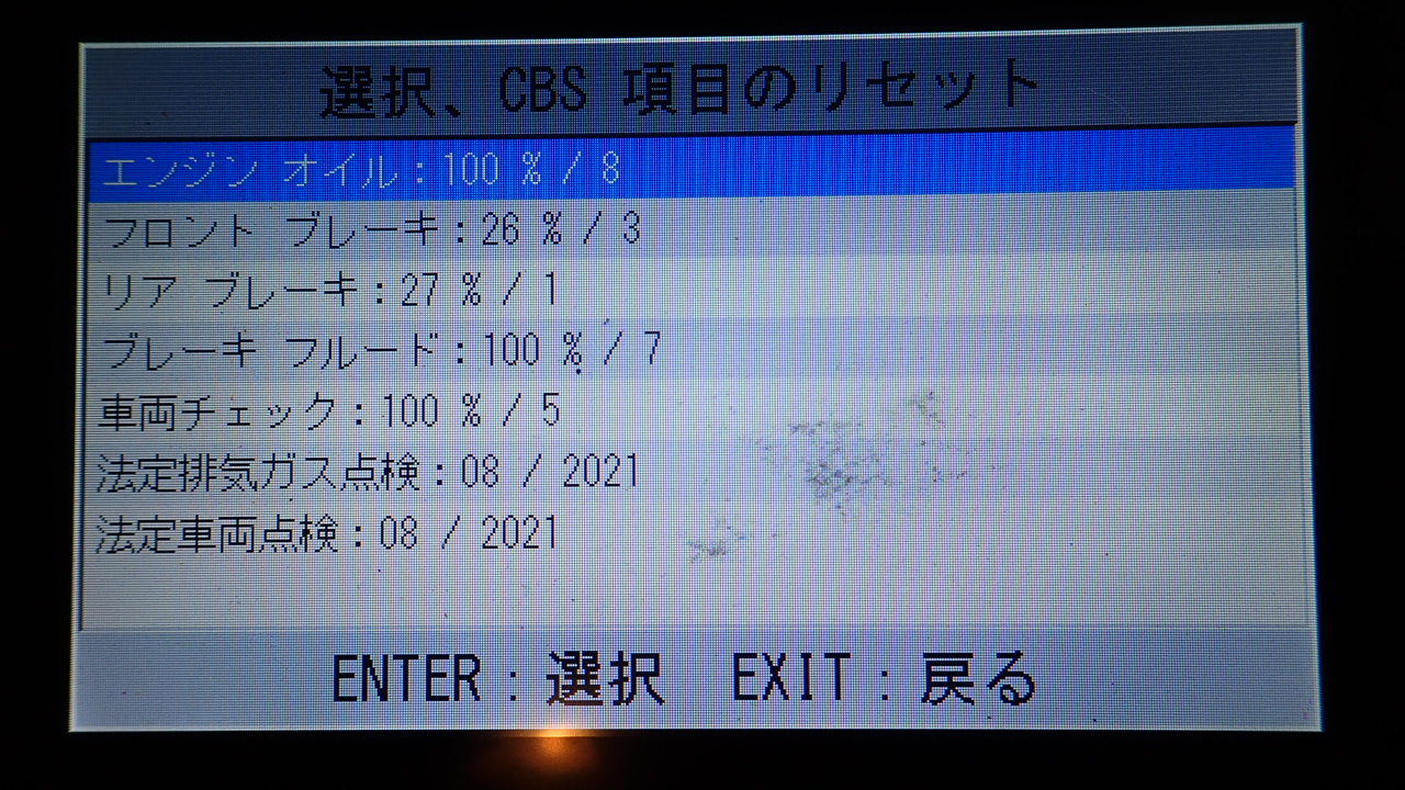 テスターにて故障コードの確認と、サービスのリセットを実施しています。