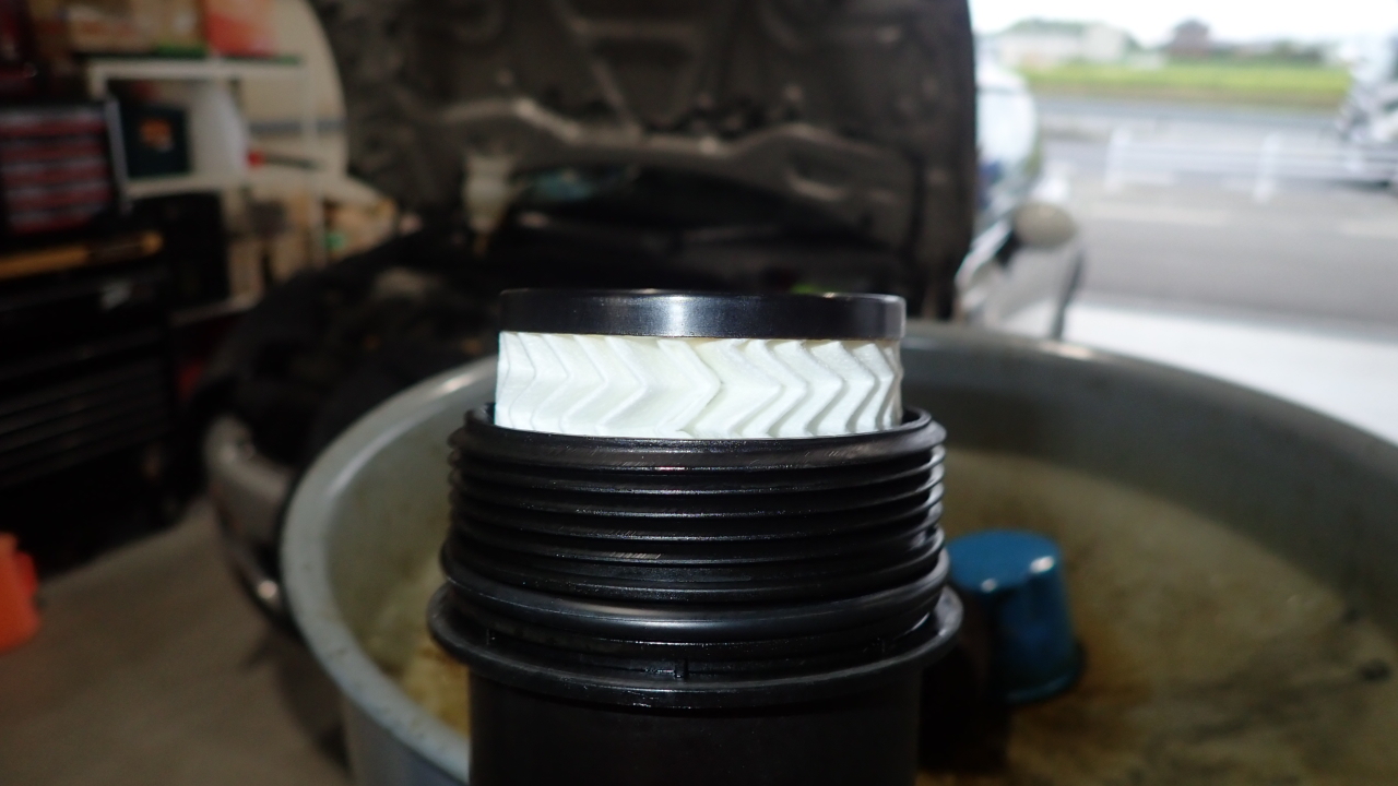 交換前、交換後のエンジンオイルフィルターです。