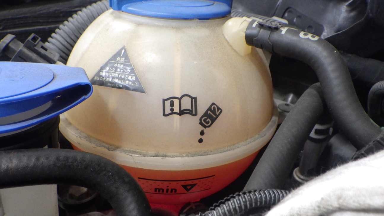 エンジン冷却水です。クーラント量、状態、各部漏れ等点検実施しています。