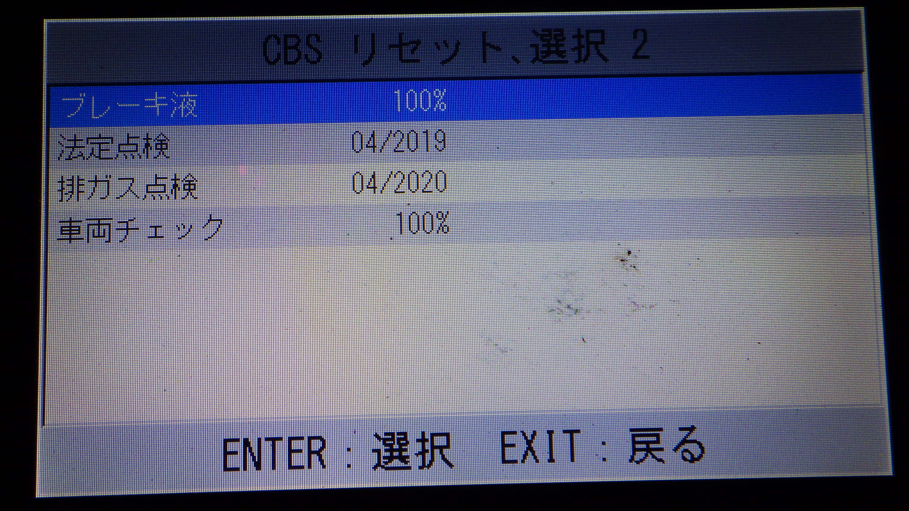 テスターにて故障コードの確認と、サービスのリセットを実施しています。