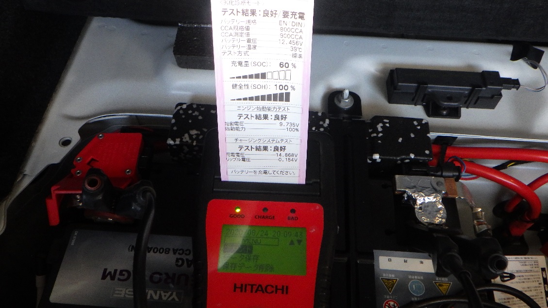 テスターにて故障コードの確認と、サービスのリセットを実施しています。
