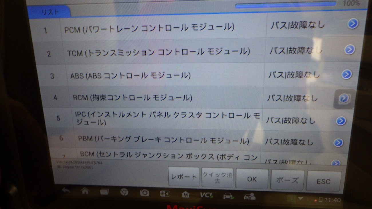 テスターにて故障コードの確認と、サービスのリセットを実施しています。
