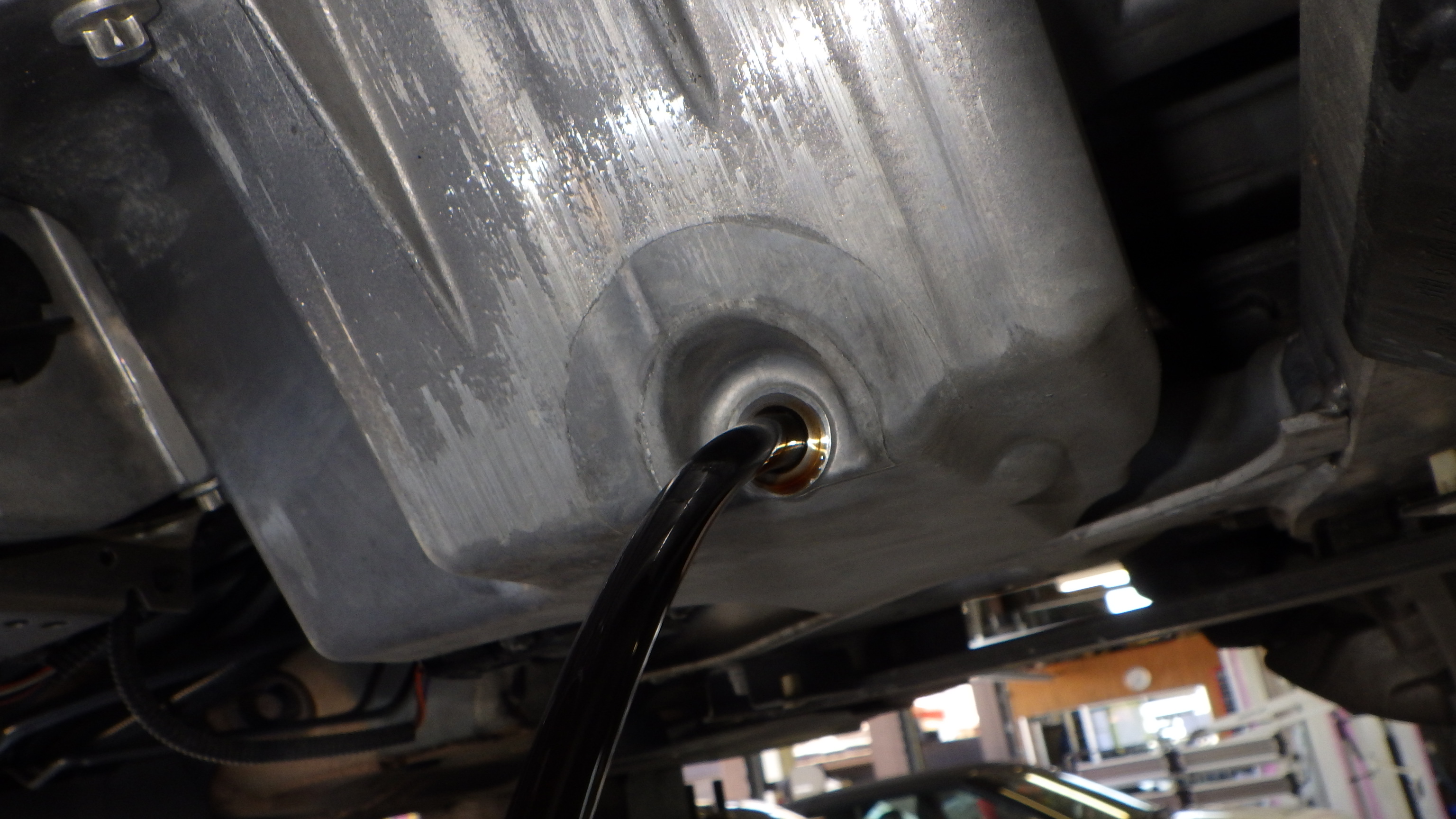 交換前、交換後のオイルです。 交換後オイル量の点検も実施しています。