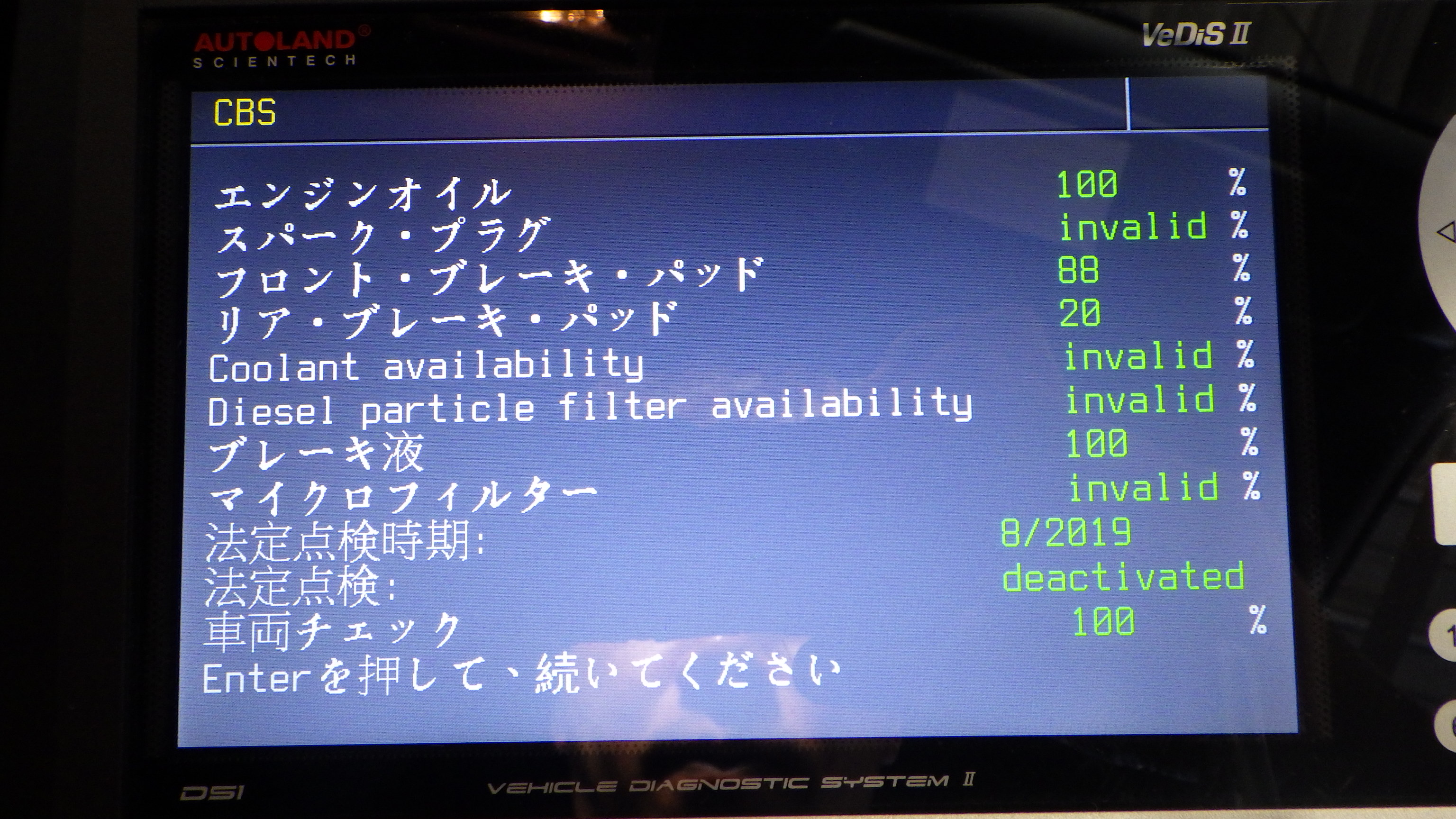 テスターにて故障コードの確認と、サービスのリセットを実施しています。