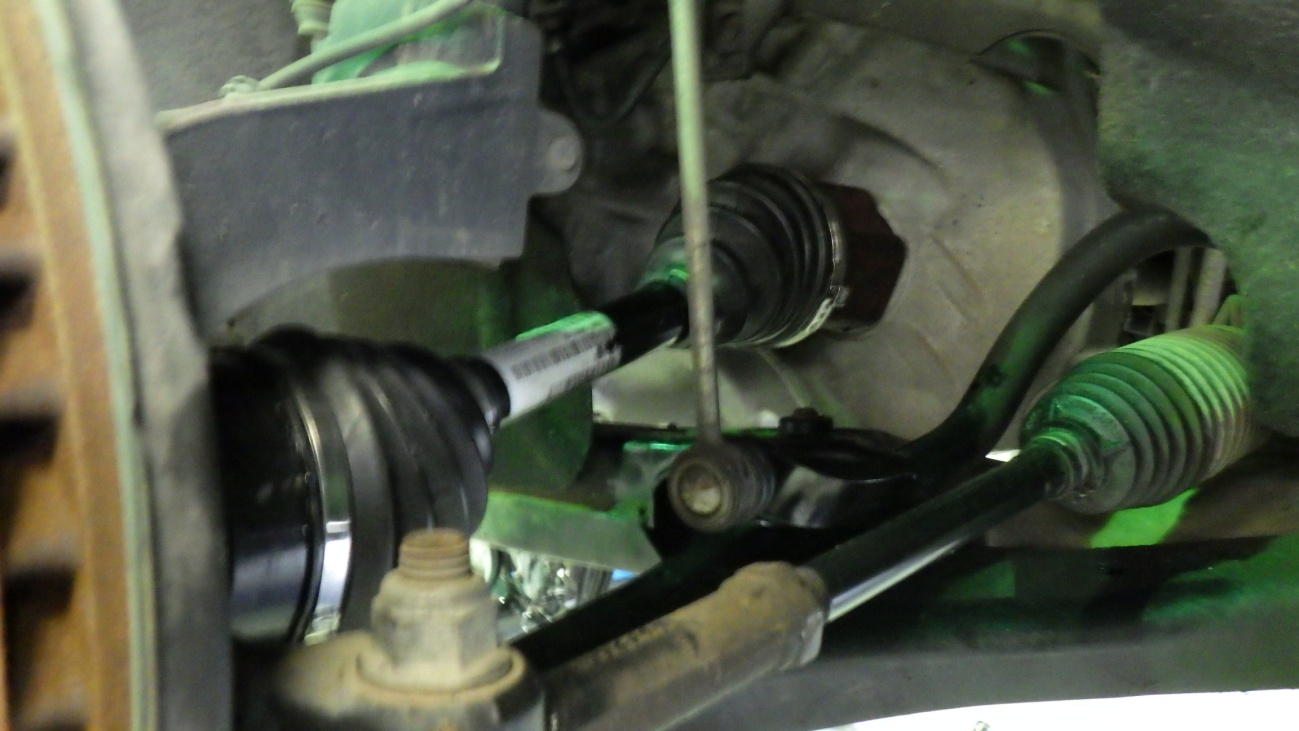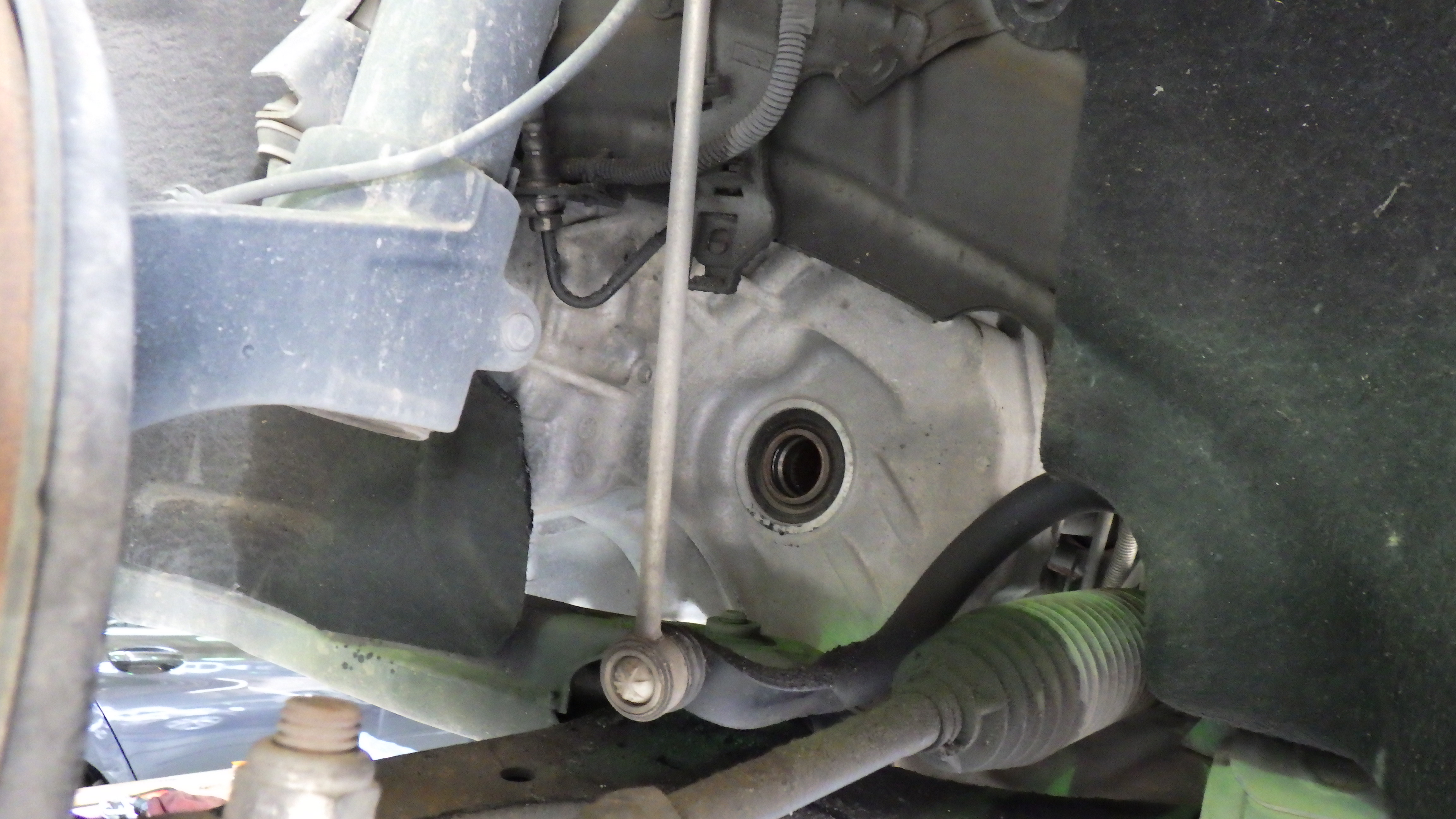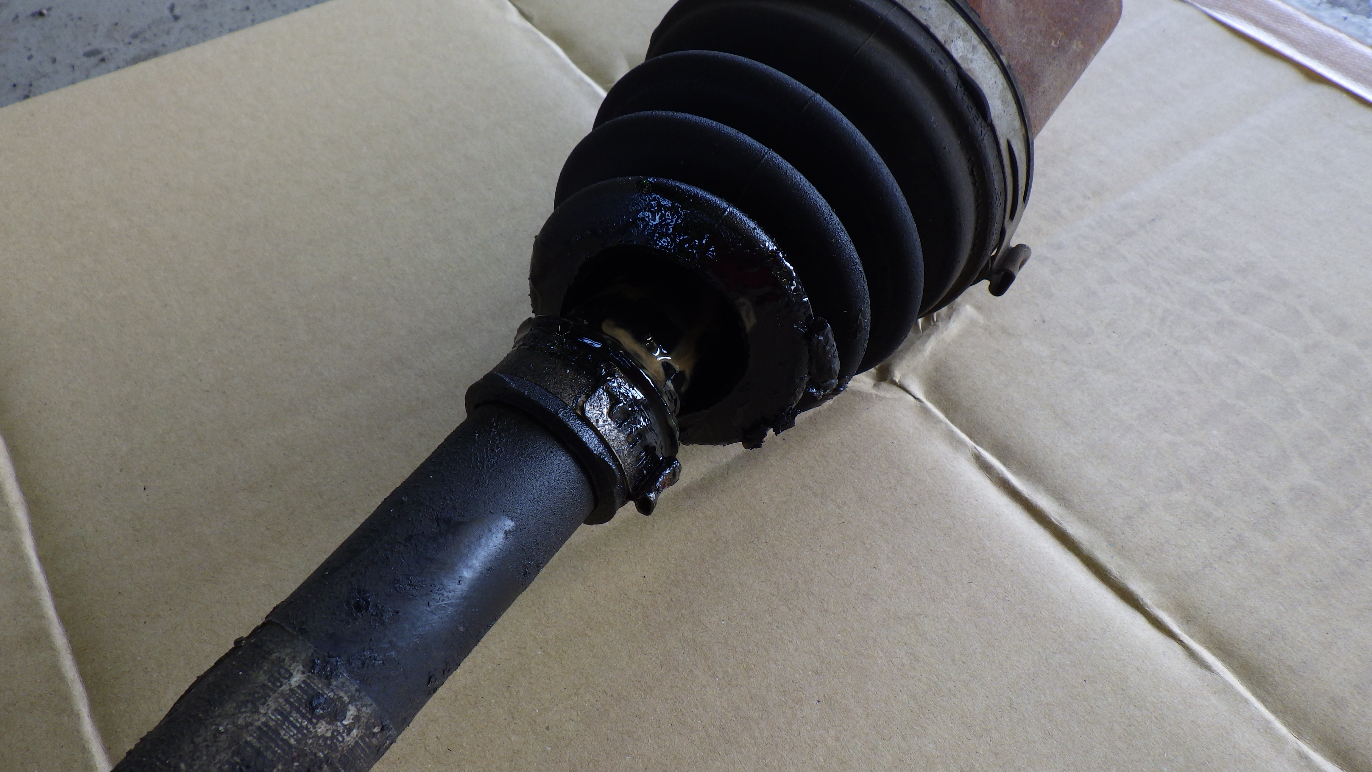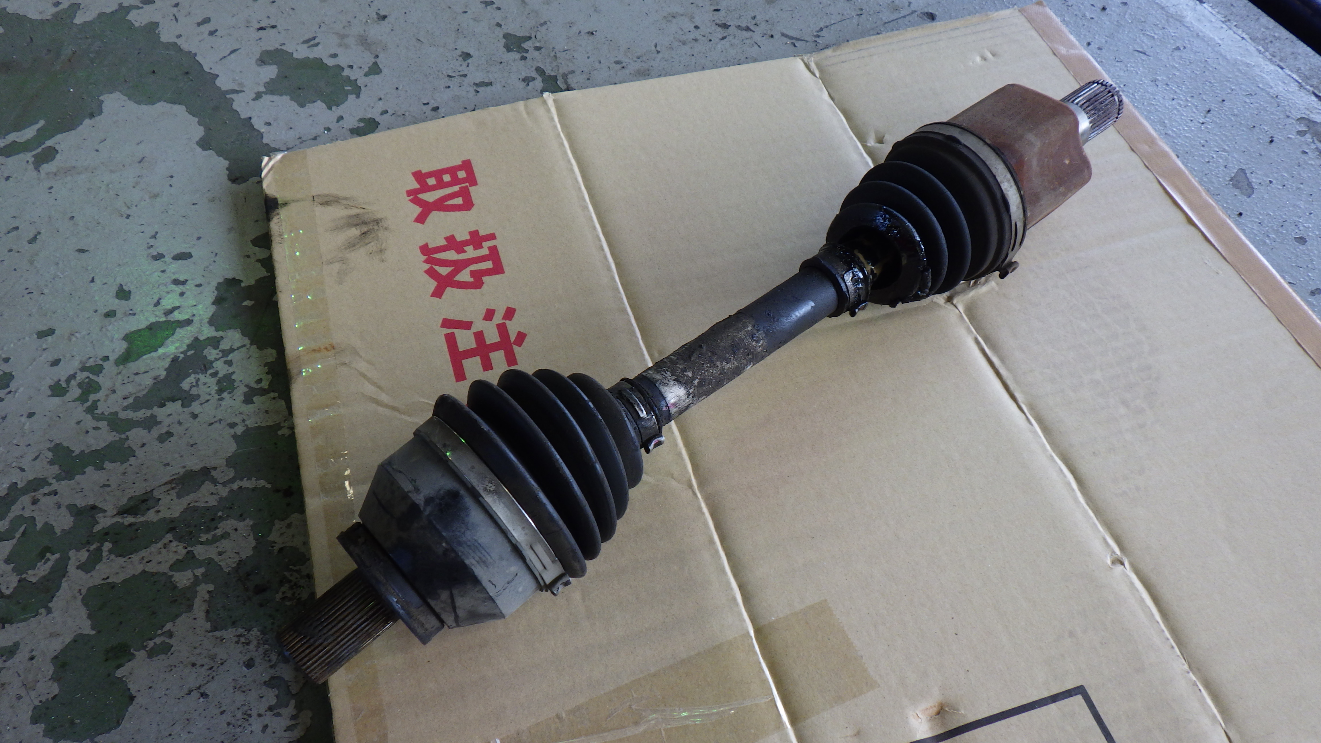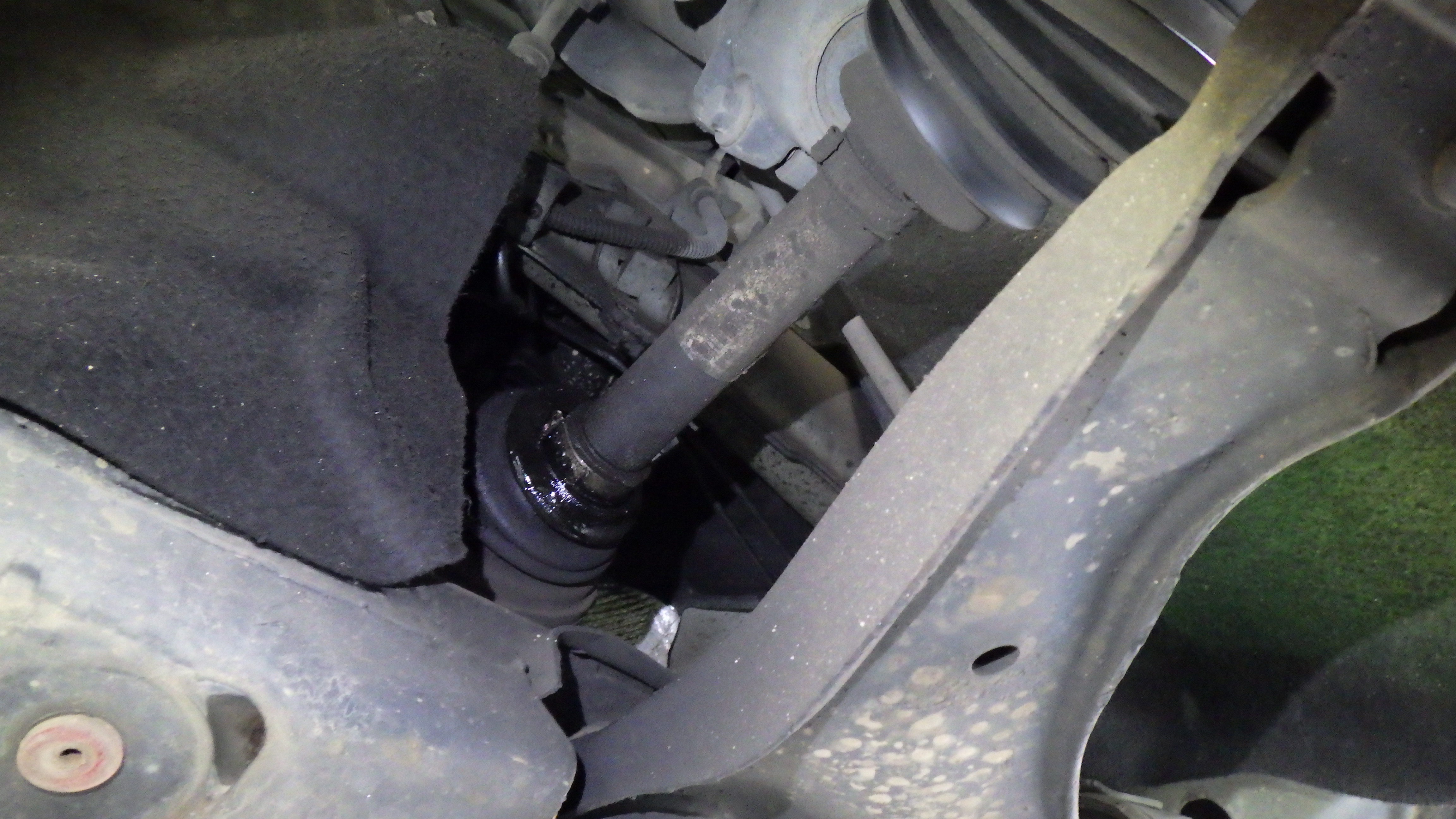 次に車体下部で、ドライブシャフトのブーツが破れていました。