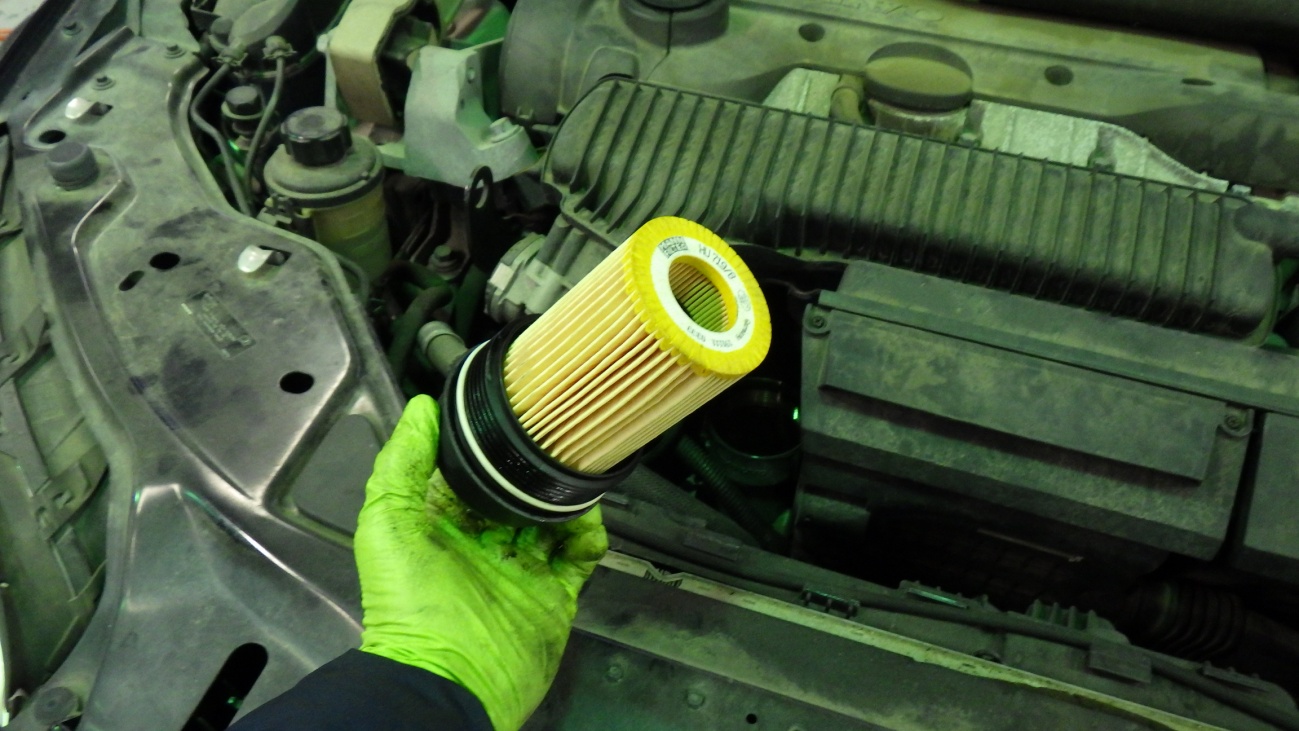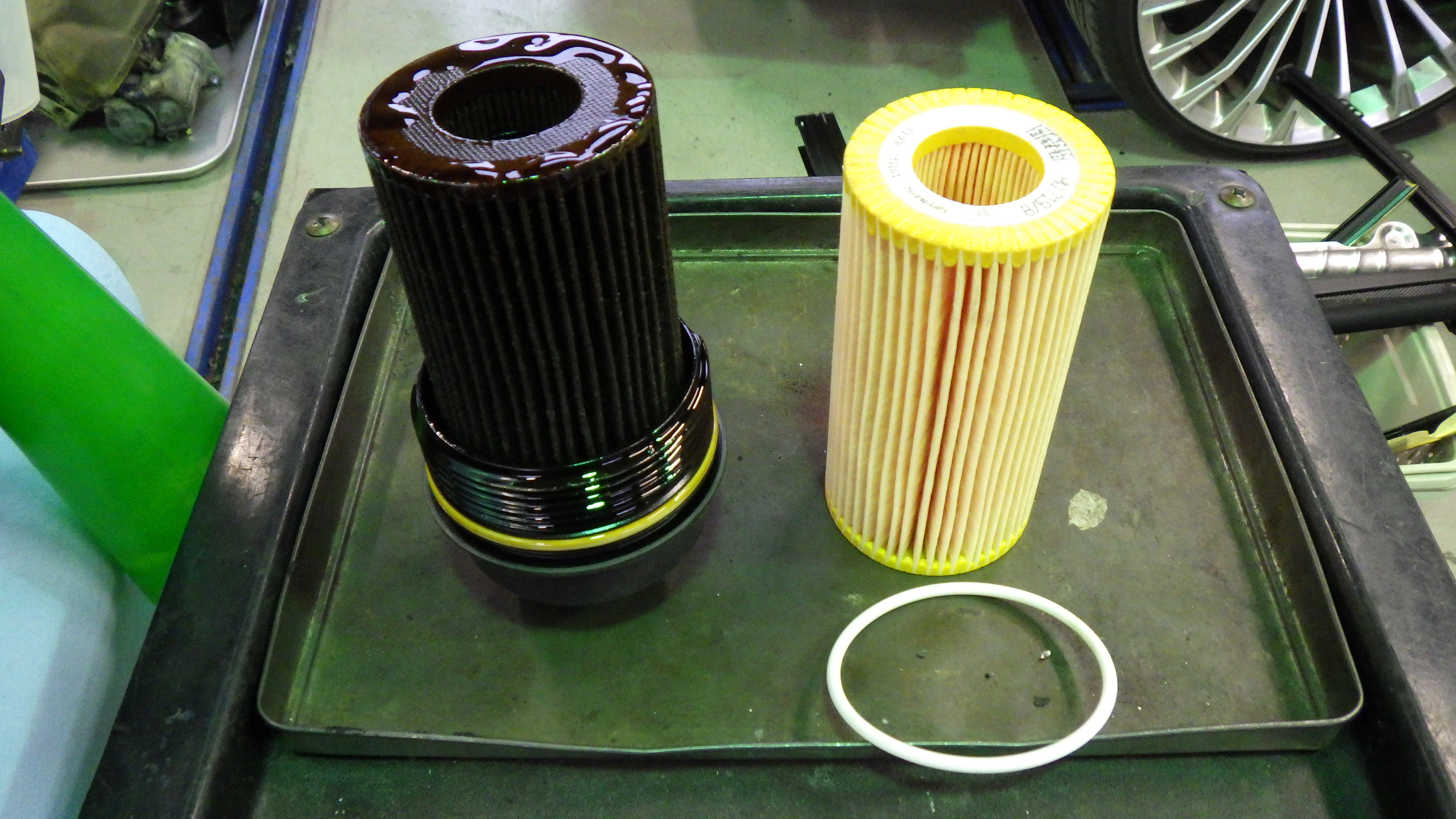 エンジンのオイルフィルターはエンジンの上側から交換します。